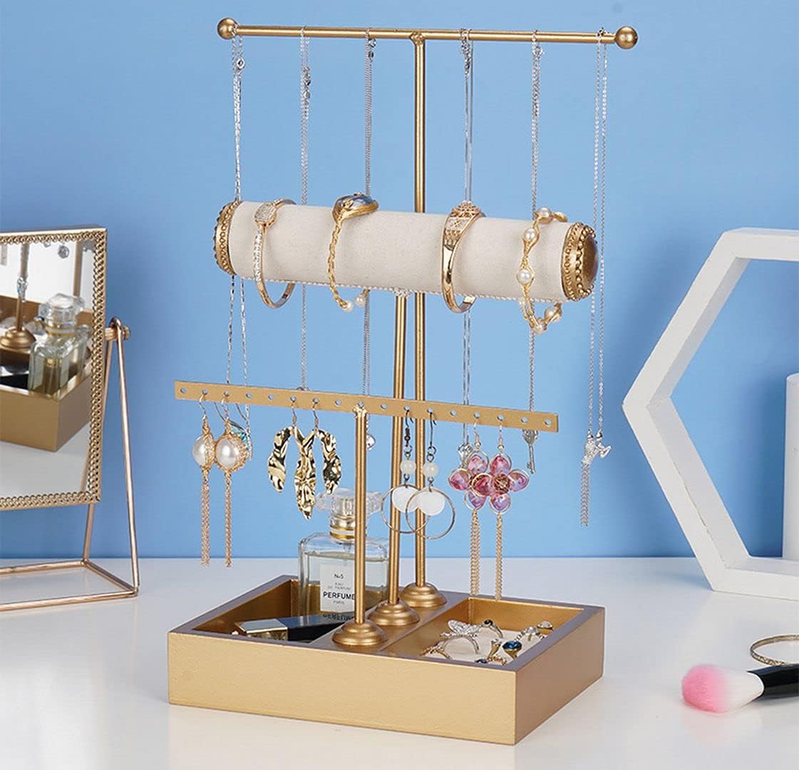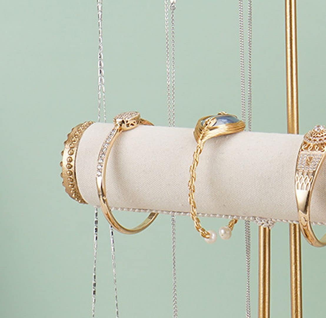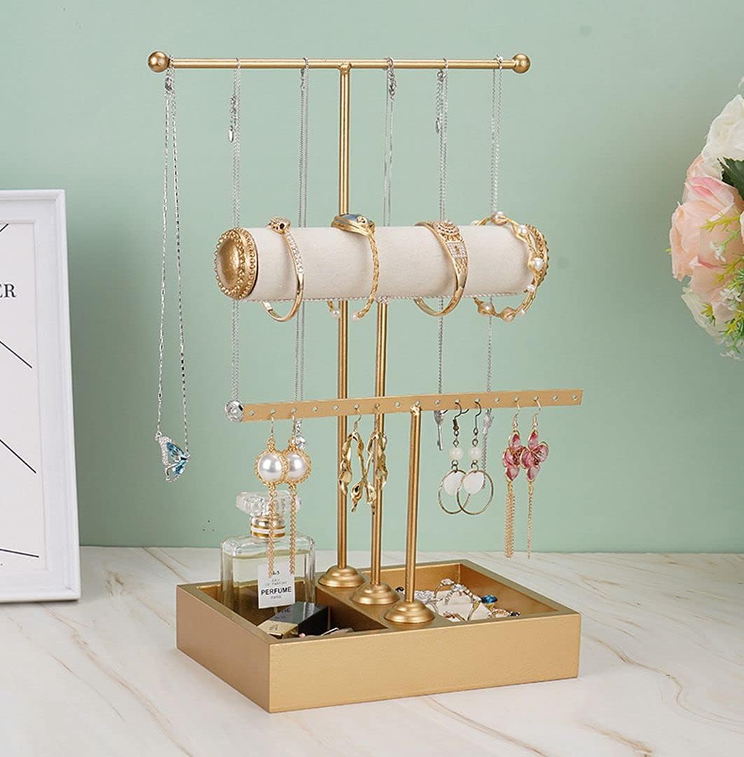 ChezMax Triple Tier Jewery Display Removable Bracelet Holder Jewelry Stand Necklace Stand Jewelry Towers and Watch Holder for Home Organization(T- Gold)