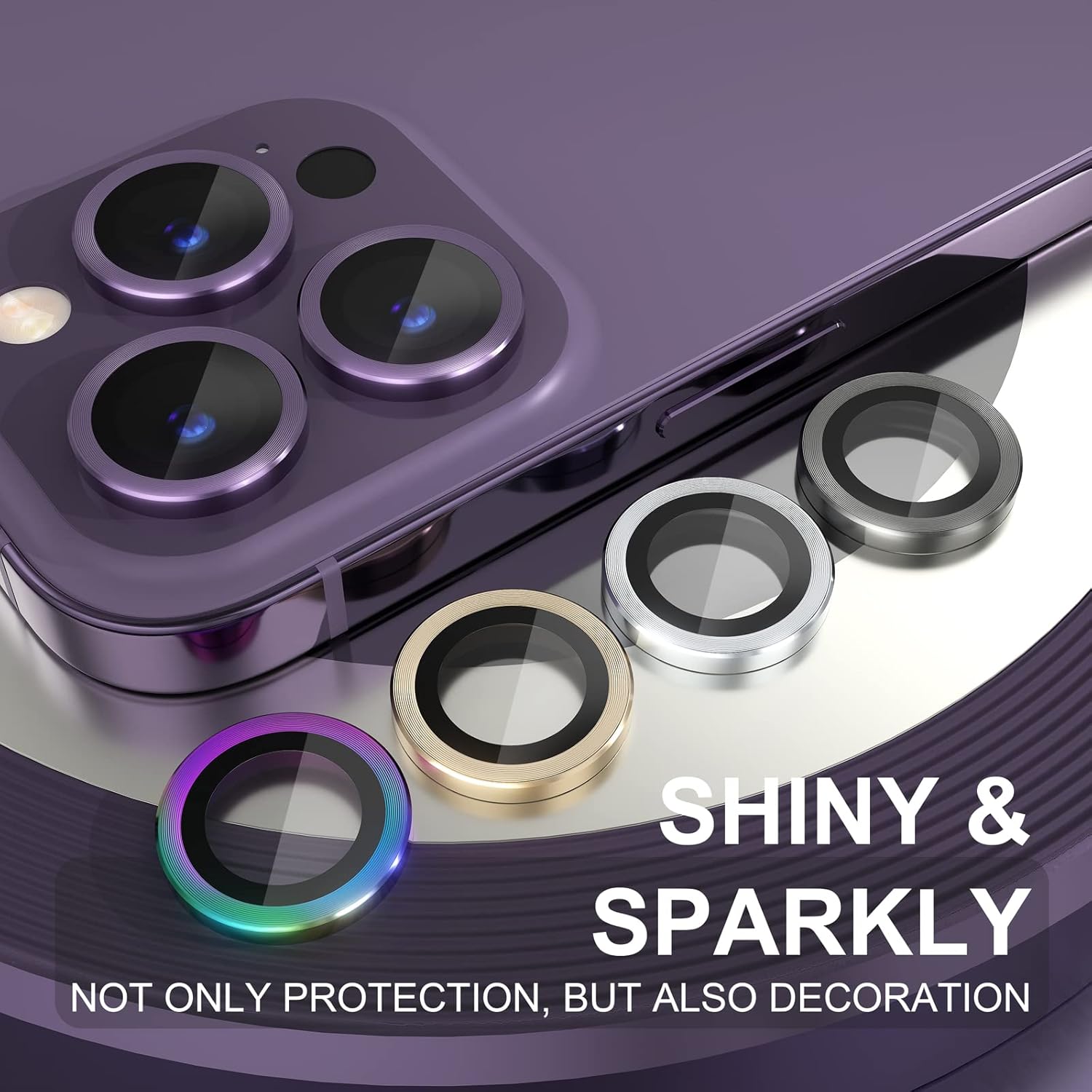 Choiche [3+1] for iPhone 14 Pro/iPhone 14 Pro Max Camera Lens Protector Bling, 9H Tempered Glass Camera Cover Screen Protector Metal Ring Decoration Accessories (Deep Purple)