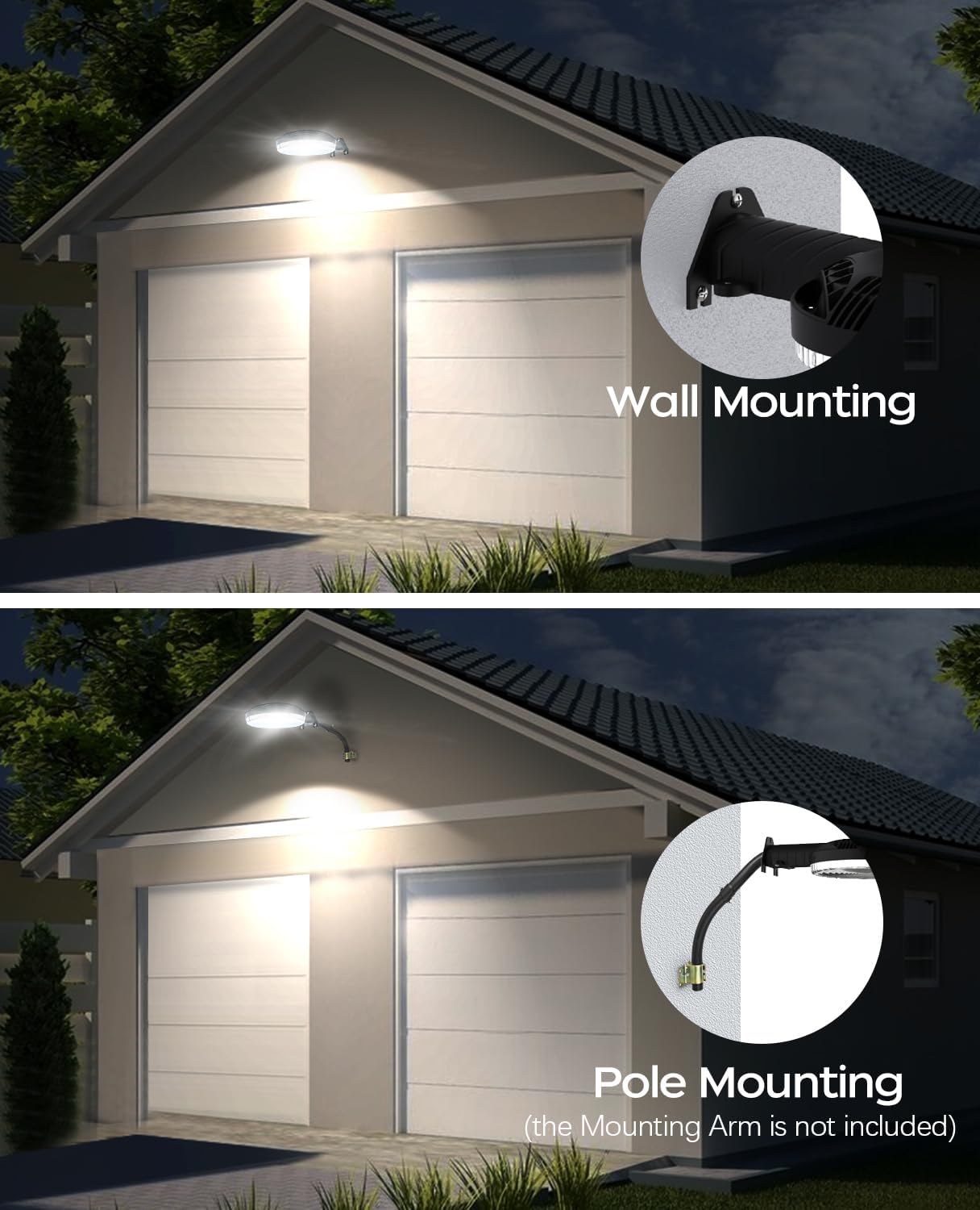 2 Way Installations – The led garage light includes quite a bit of hardware to make the installation easy. Mounts a wooden post, pole (not included), or wall using 1.64” lag screws, which are included. It’s going to work perfectly for what it was intended to do light up the yard in the evening!
