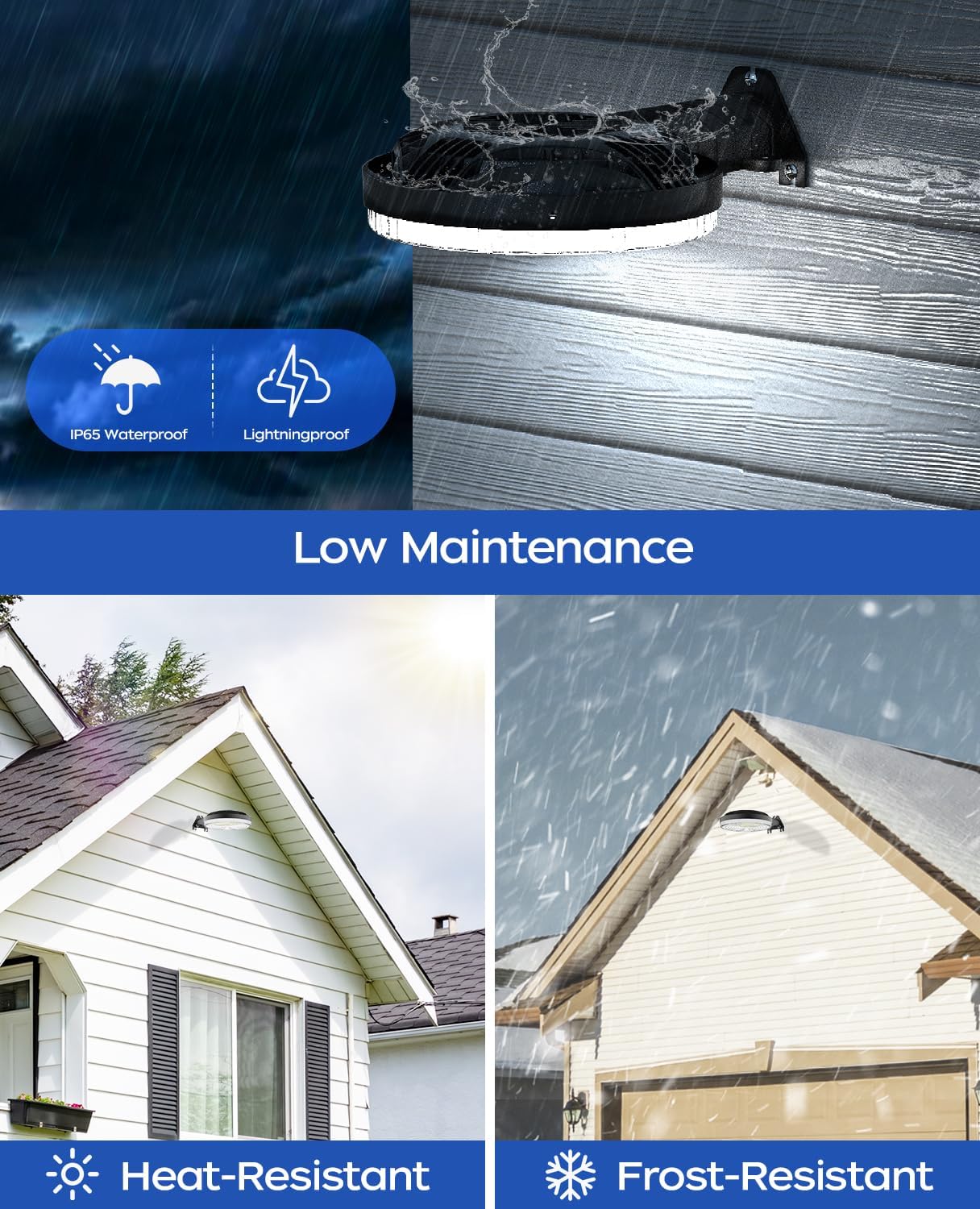 All Weather Resistant & IP66 Waterproof – This garage lights has excellent corrosion resistance & heat dissipation performance. Designed to withstand harsh weather conditions such as rain and snow, without losing their luster, function and with No flickering. This means that the outdoor lights for yard won’t fade even for decades, and you won’t have to worry about replacing them any time soon – they will last for years!