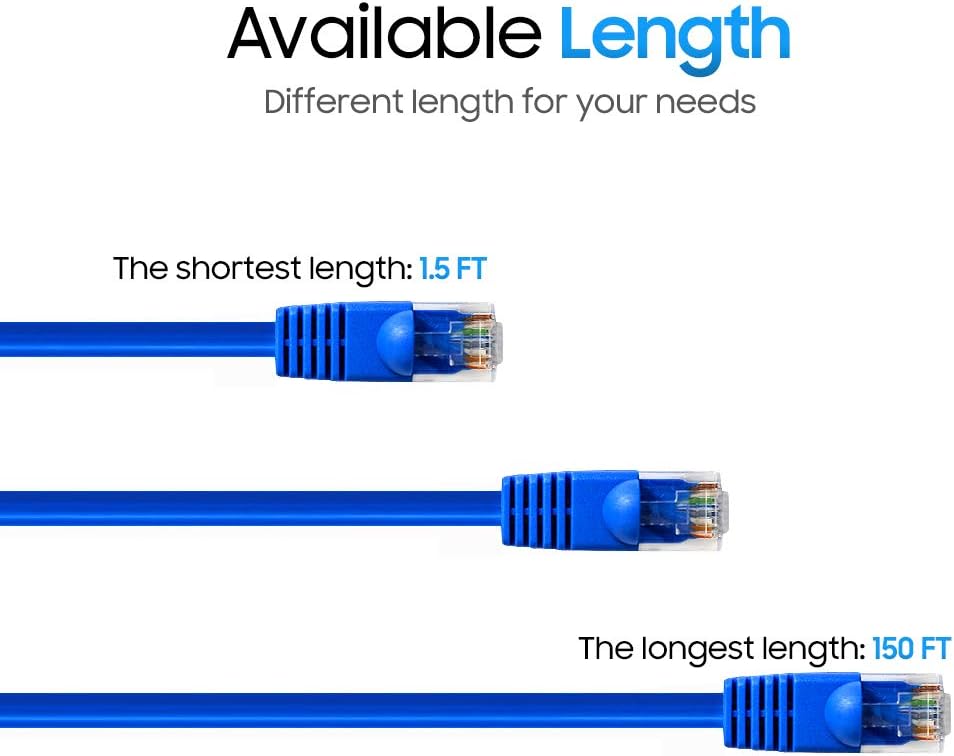PACKAGE INCLUDE: 1 x Cat5e Ethernet Network Patch Cable 350 MHz RJ45 – 10 Feet, Blue