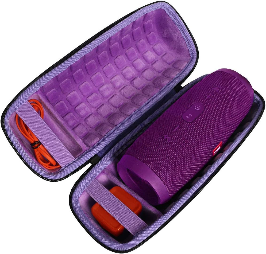 co2CREA Hard Travel Case for Replacement for JBL Charge 4 / Replacement for JBL Charge 5 Waterproof Bluetooth Speaker (Outside Black and Inside Purple)