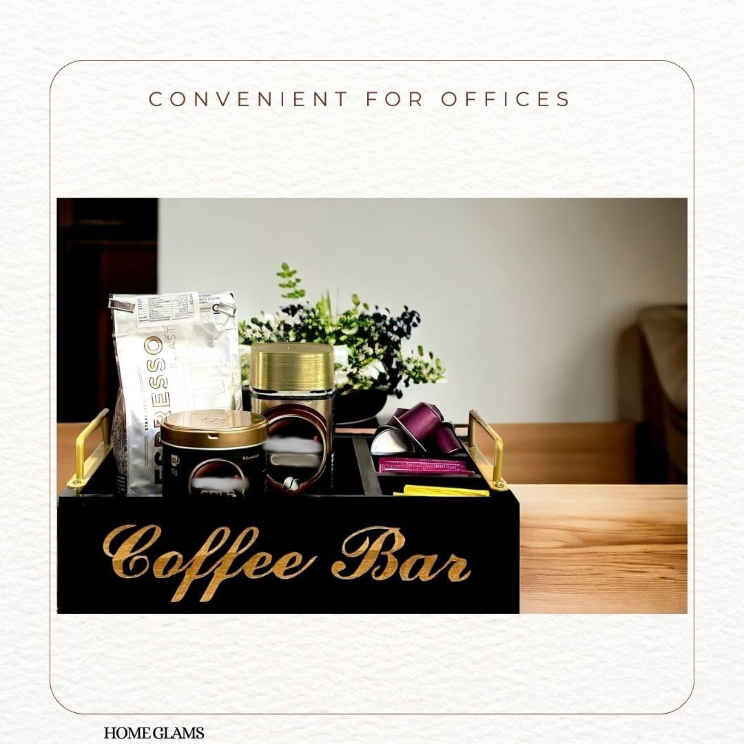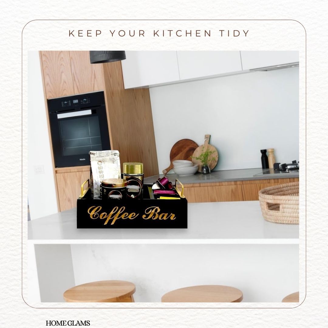 Upgrade your coffee experience with our Premium Coffee bar accessories. Designed for efficiency and style, this space-saving solution is your key to a clutter-free and organized kitchen. Transform your coffee corner into a sleek and efficient haven. With dedicated compartments for all your coffee bar essentials, easy access, and a durable build, it’s the perfect addition to any coffee set. Versatile, sleek, and built to last, our coffee station accessories is the ultimate gift for those who appreciate a well-organized coffee corner. Transform your coffee corner into a stylish and organized haven with our coffee station and bar accessories. Elevate your decor with a chic bar cart that not only serves as a practical organizer but also adds a touch of sophistication to any space. From shelves and shelving units to table decor, our black and gold-themed item seamlessly blend into any kitchen or home setting, creating a warm and inviting atmosphere. Our Coffee Organizer ensures that every item has its place, making it easy to find what you need. A stylish sign and stand add a personalized touch to your coffee corner and bring convenience to your daily routine. Whether you’re looking to revamp your kitchen, improve your office, or create a cozy coffee nook in your living room, our collection of coffee bar accessories, storage solutions, and decor item in the ever-popular boho style, have got you covered. Make every moment special to bring joy to any coffee or tea lover’s heart. Embrace the essence of comfort and style with our wooden caddy, optimizing your space for espresso pods, snack packets, teabags, and serving essentials. Discover the perfect balance of functionality and aesthetics.