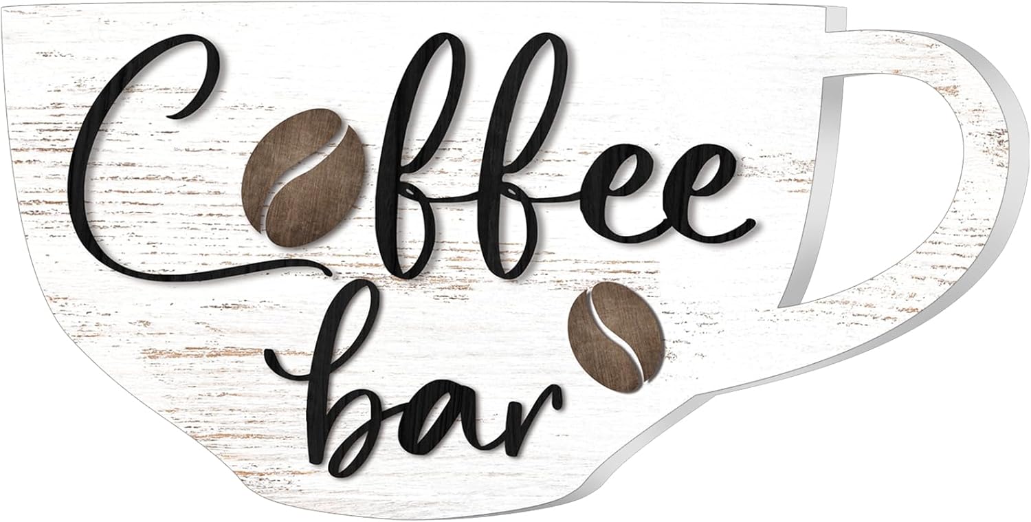 Rustic Design: the overall shape of wood wall decor adopts a coffee cup, combined with vivid 3D fonts and coffee beans, elegant fonts and exquisite design, adding a touch of bright color to your home, kitchen or coffee bars decoration