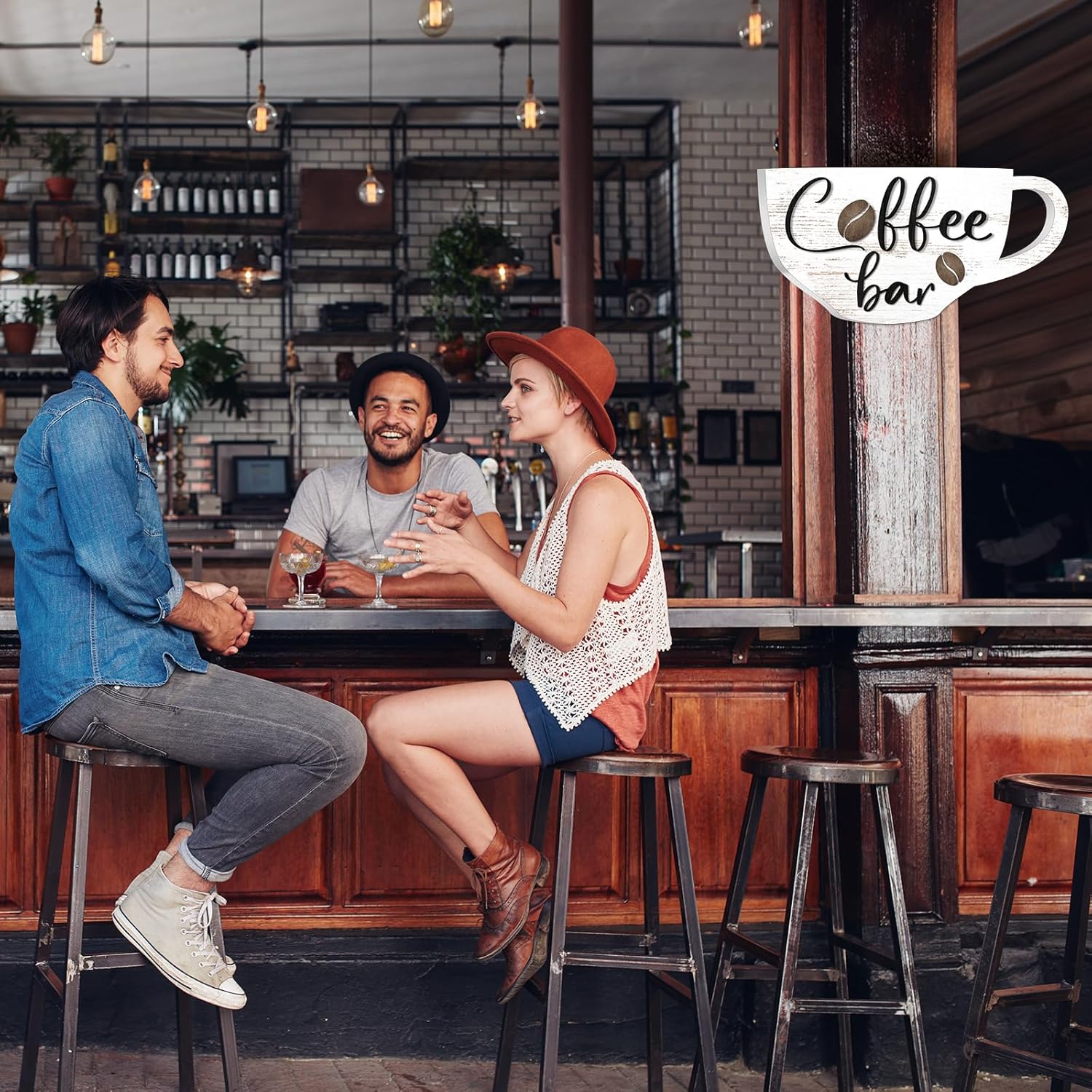 Coffee Bar Sign 13 x 6.7 Inch Rustic Wood Coffee Sign Farmhouse Coffee Bar Wall Decor Coffee Wall Sign Boho Kitchen Decor Art Accessories for Home, Kitchen, Coffee Station (White)