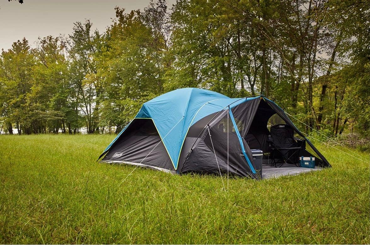 Coleman 8-Person Carlsbad Dark Room Dome Camping Tent with Screen Room, 2 Rooms, Blue
