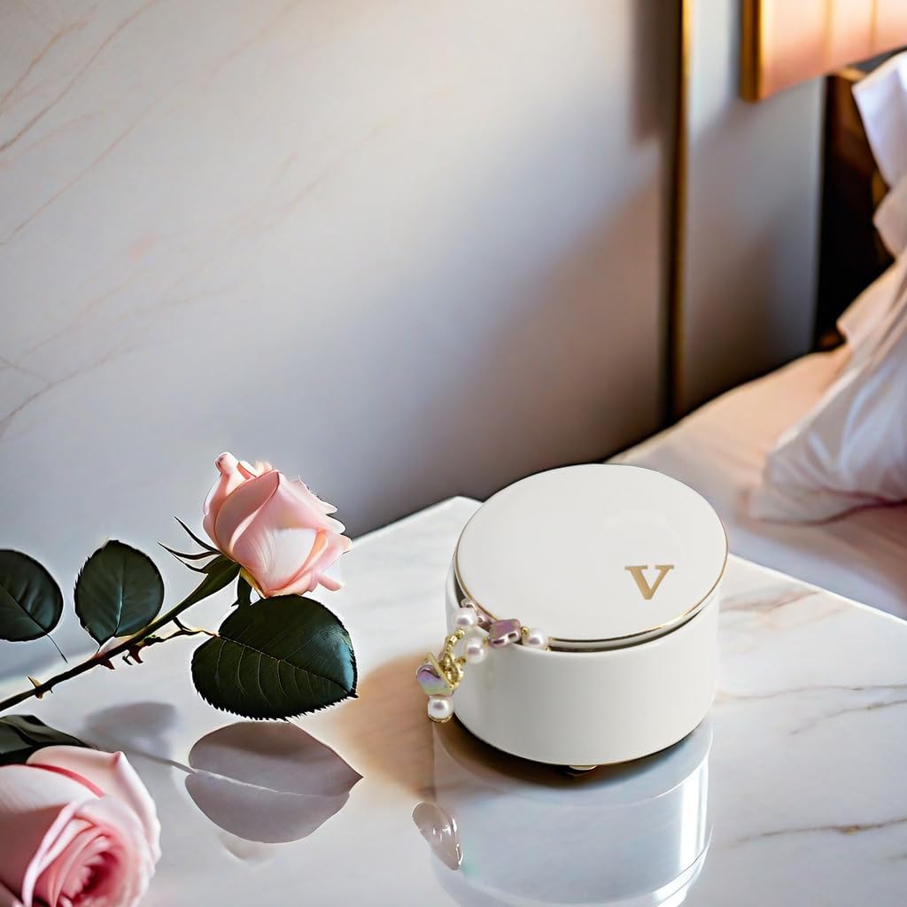 【Premium Ceramic Construction】Crafted from high-quality white ceramic, this jewelry box is not only visually appealing but also durable and long-lasting, perfect for safeguarding your valuables.
