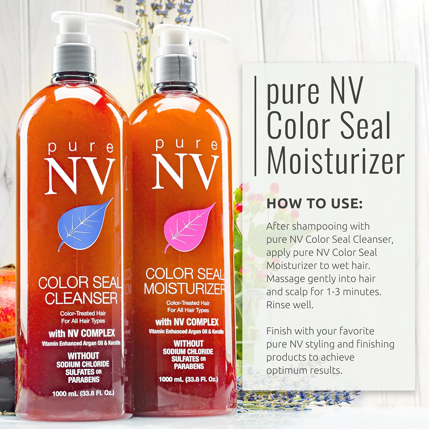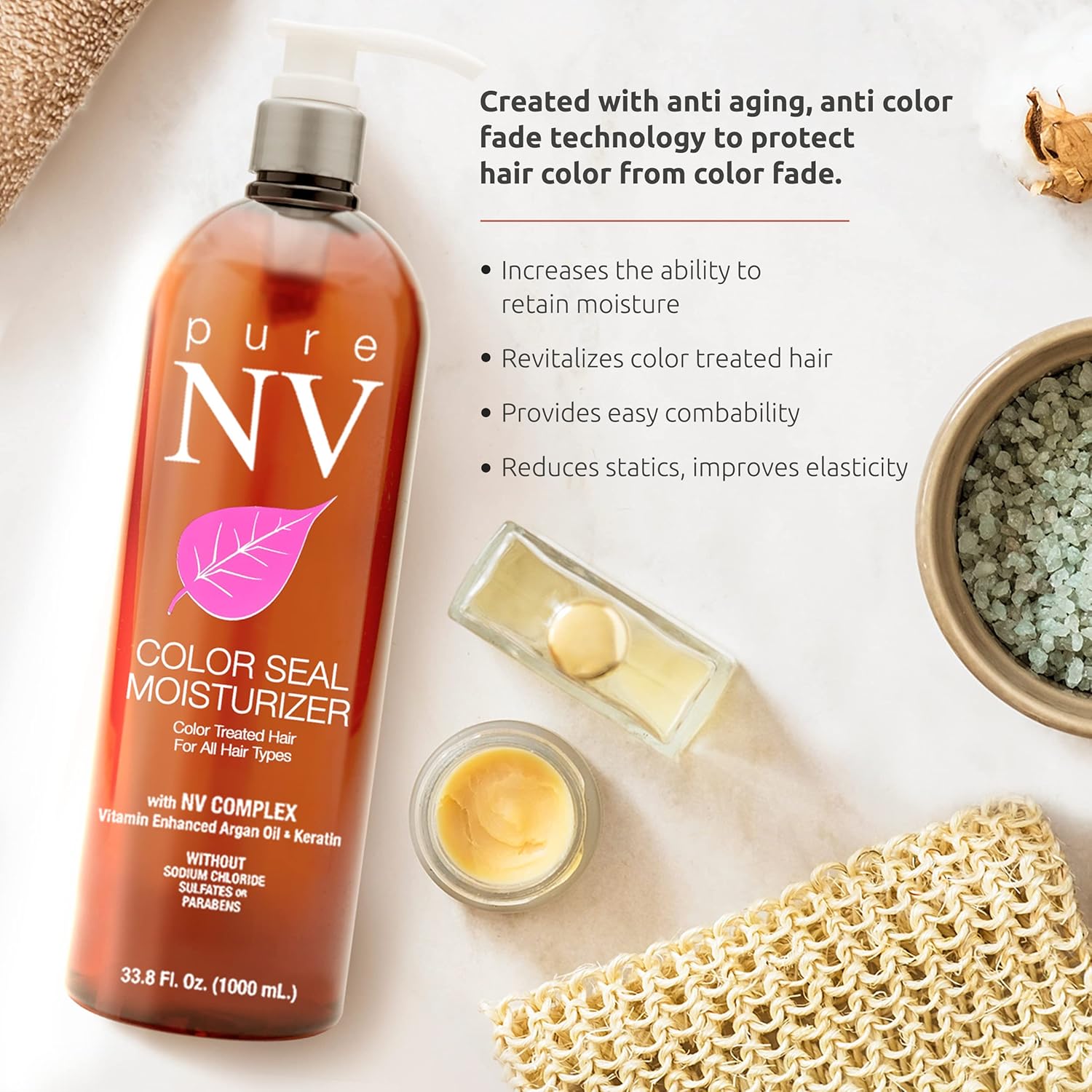 Pure NV Color Seal Moisturizer is an NV complex enriched, botanically blended, keratin, collagen, and argan oil infused color sealing conditioner developed to lock in hair color, deliver immediate nourishment, enhance vibrancy and luster, and revitalize color treated hair. Color Seal Moisturizer will soften the hair fibers, providing easy combing ability, reducing static, improving elasticity, and taming fly aways.