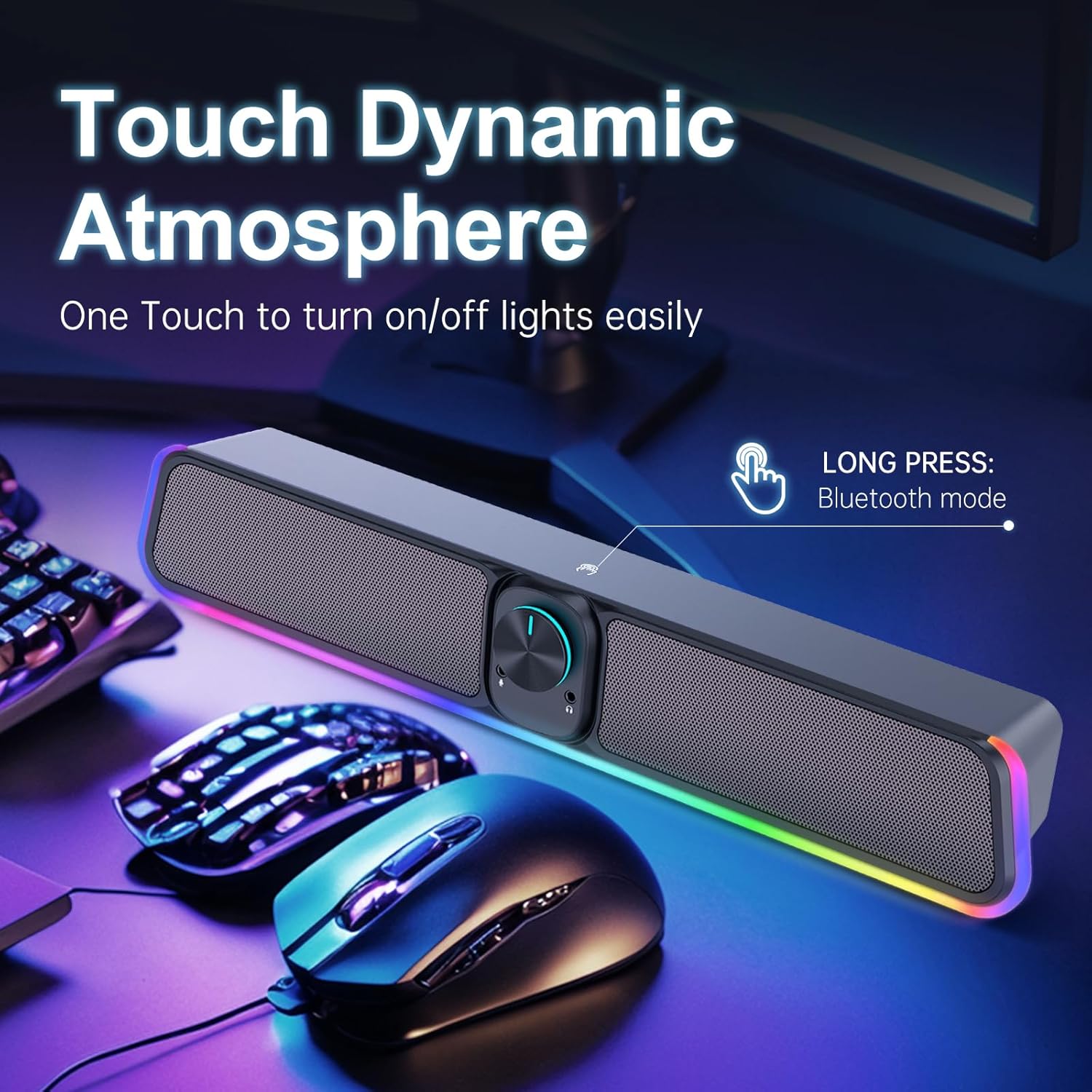 【Touch Game Lights】- Unique Dynamic Game Atmosphere design! Desktop speaker with latest One Touch to turn on/off lights, avoid the traditional cumbersome button design.