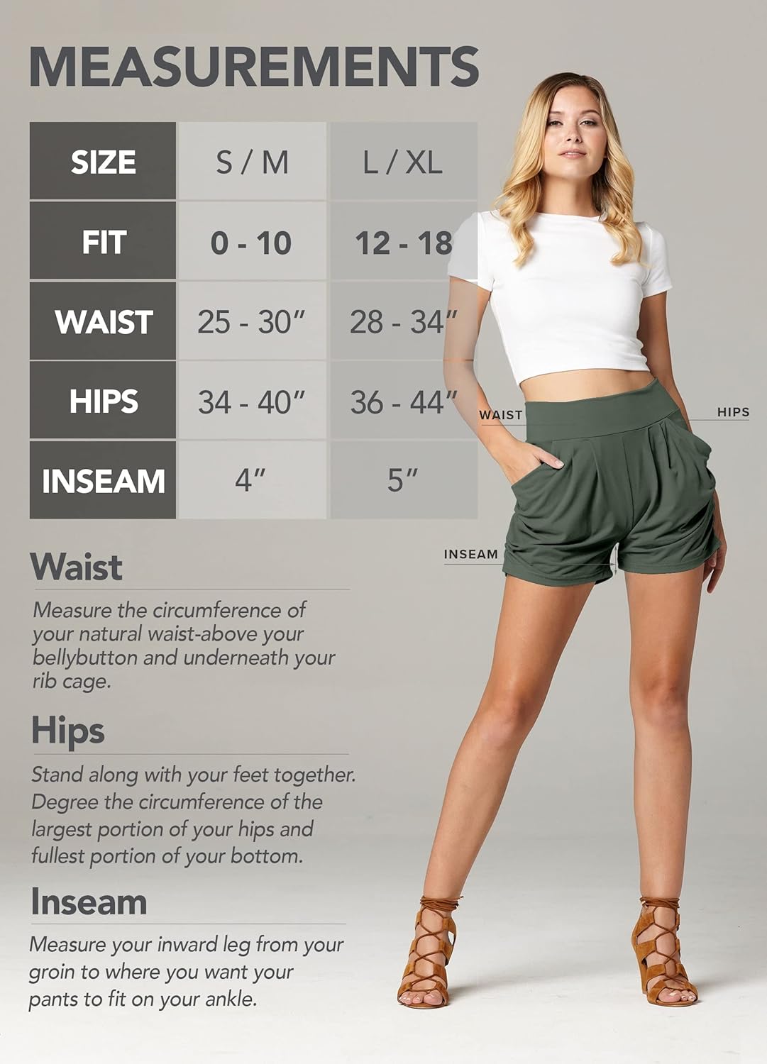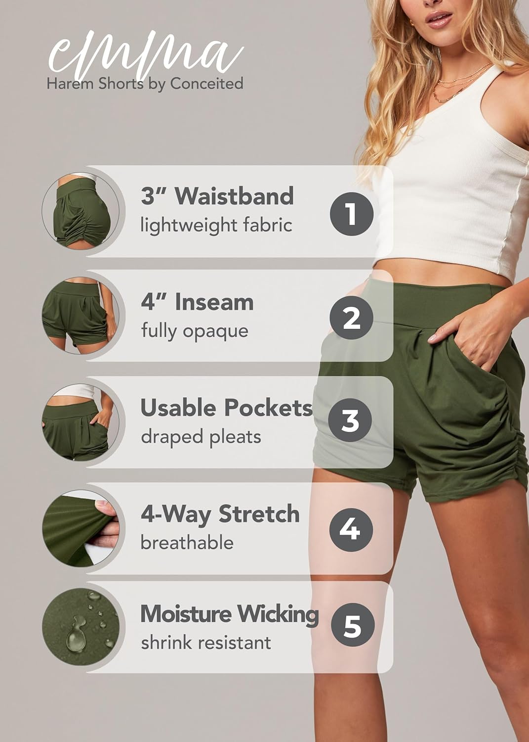 Conceited Ultra Soft High Waisted Harem Shorts for Women with Pockets – Flowy 4″ Inseam