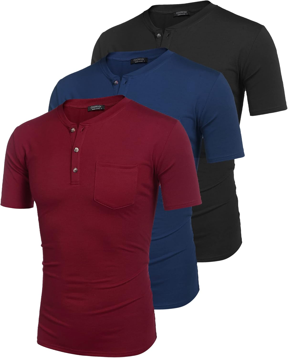 COOFANDY Men’s 3 Pack Henley Shirts Short Sleeve Casual Basic Tees Classic Henley Summer Solid T Shirts with Pocket