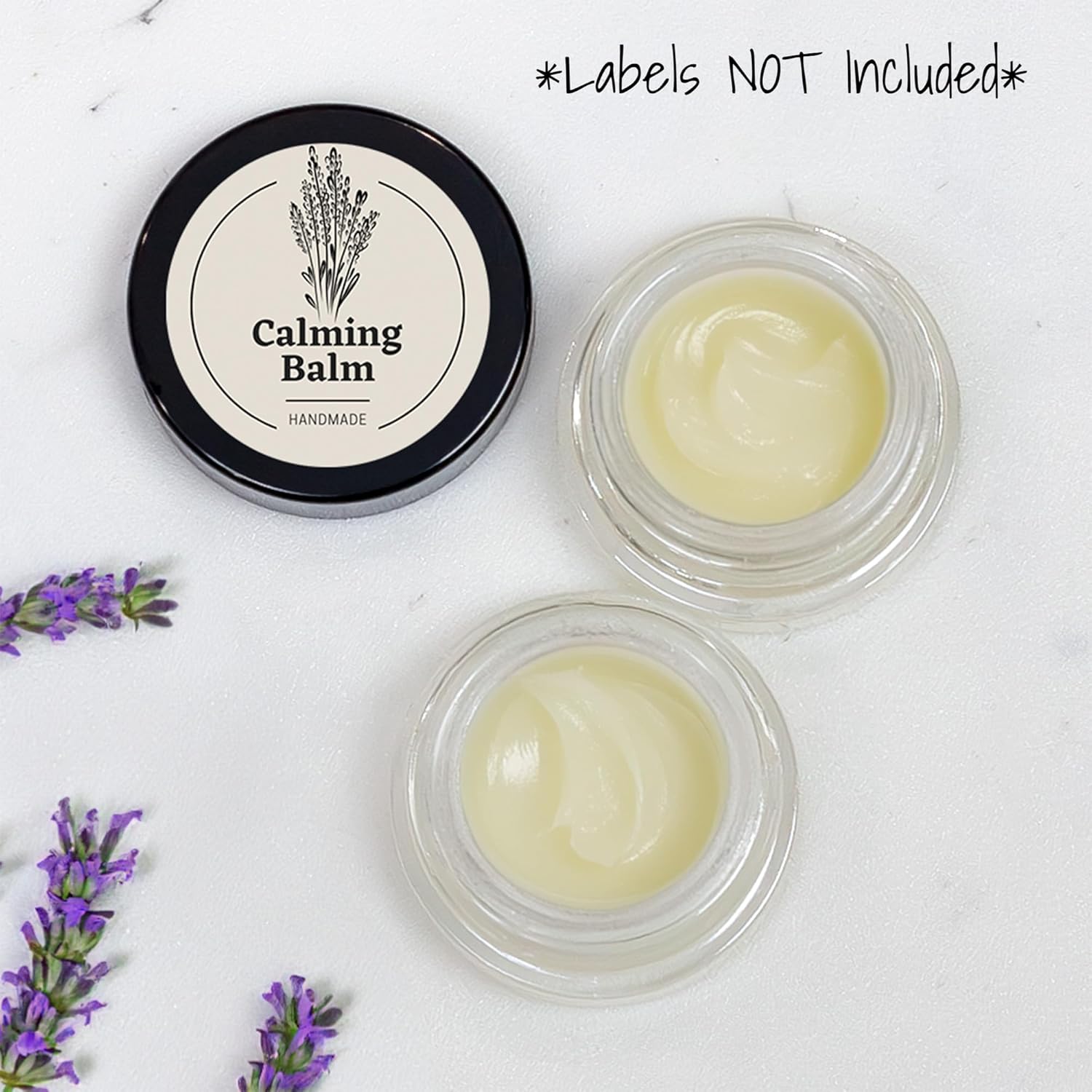 Cornucopia 7-Milliliter Clear Glass Balm Jars (12-Pack); 1/4 oz Cosmetic Jars with Lined Black Plastic Lids