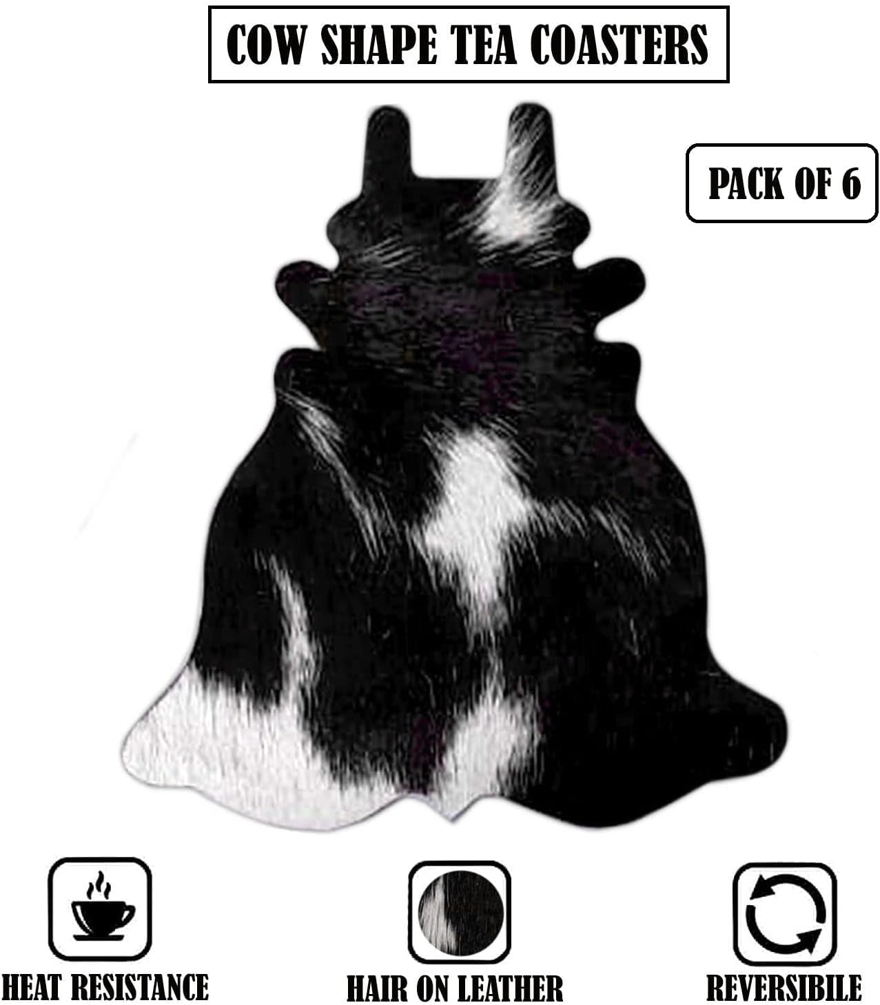Cowhide Coaster Set of 6 pcs Natural Cowhide Drink Coasters Hair On Cow Shape Coasters Leather Tea Cup Coasters Home Décor & Home Living Ideas by NGF, 4.5 x 4.5 x 0.5 inches