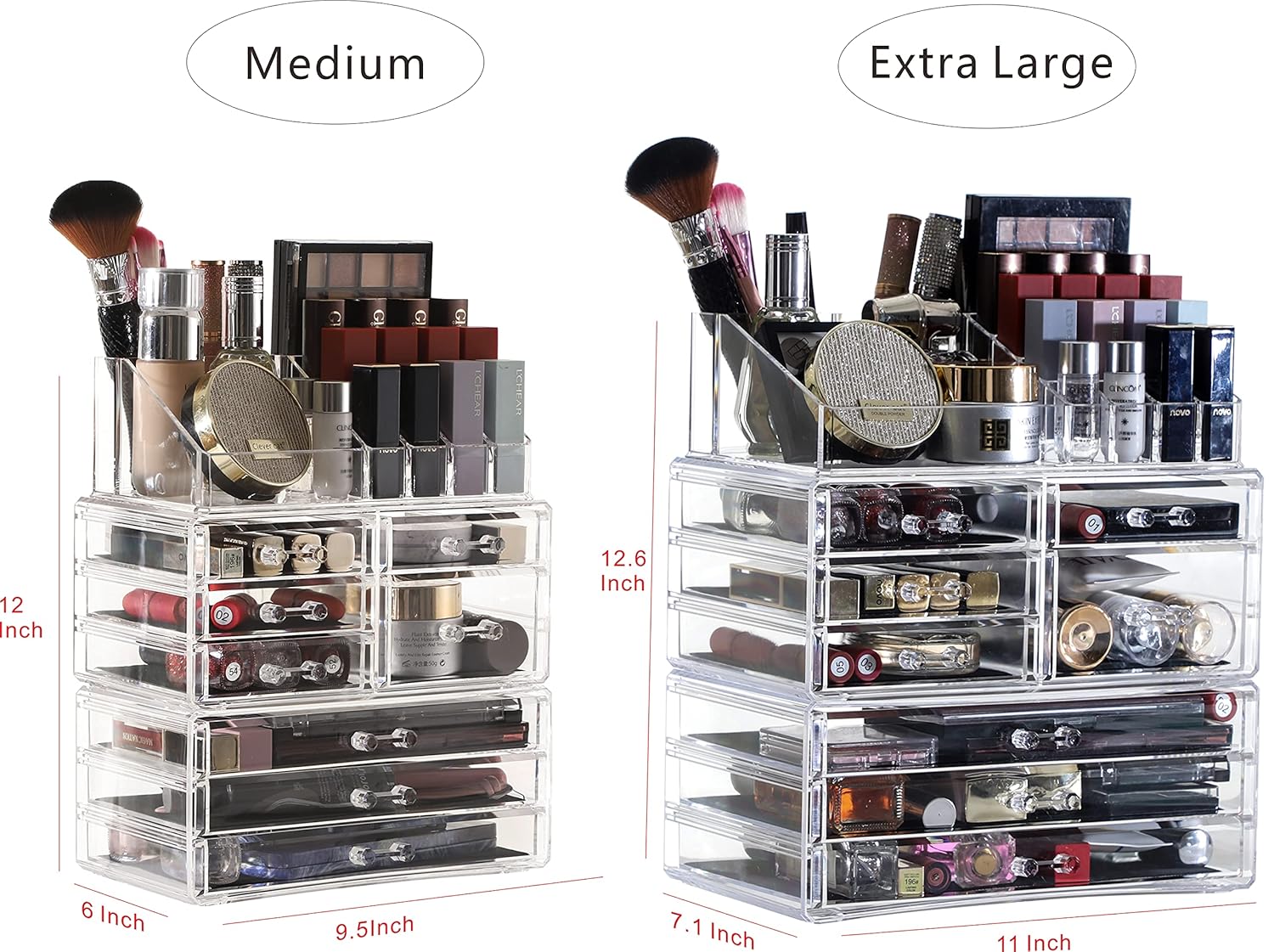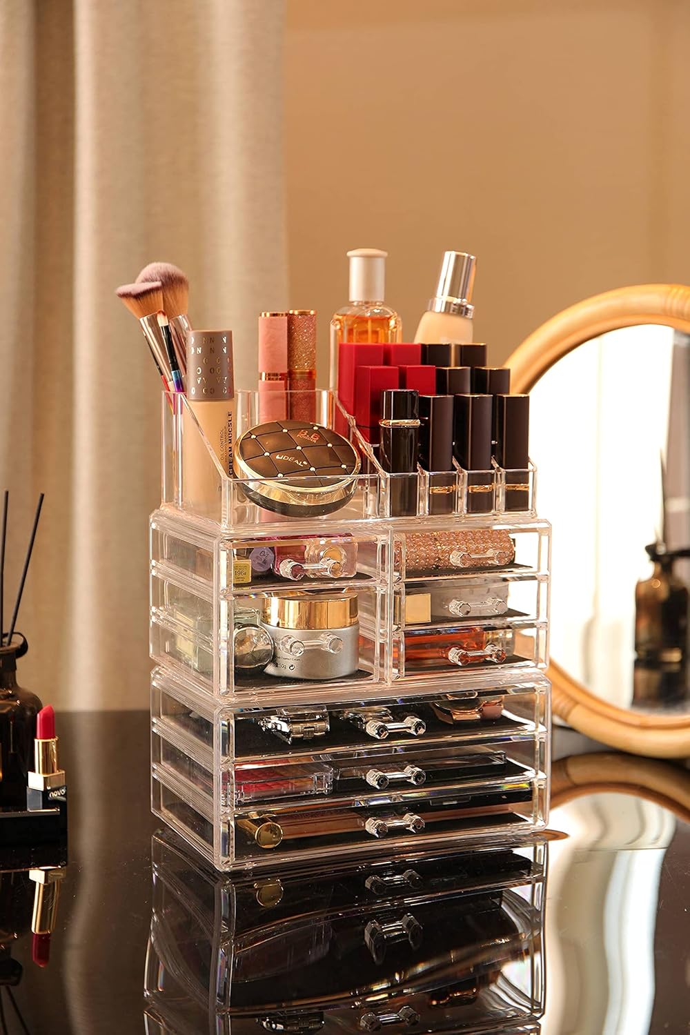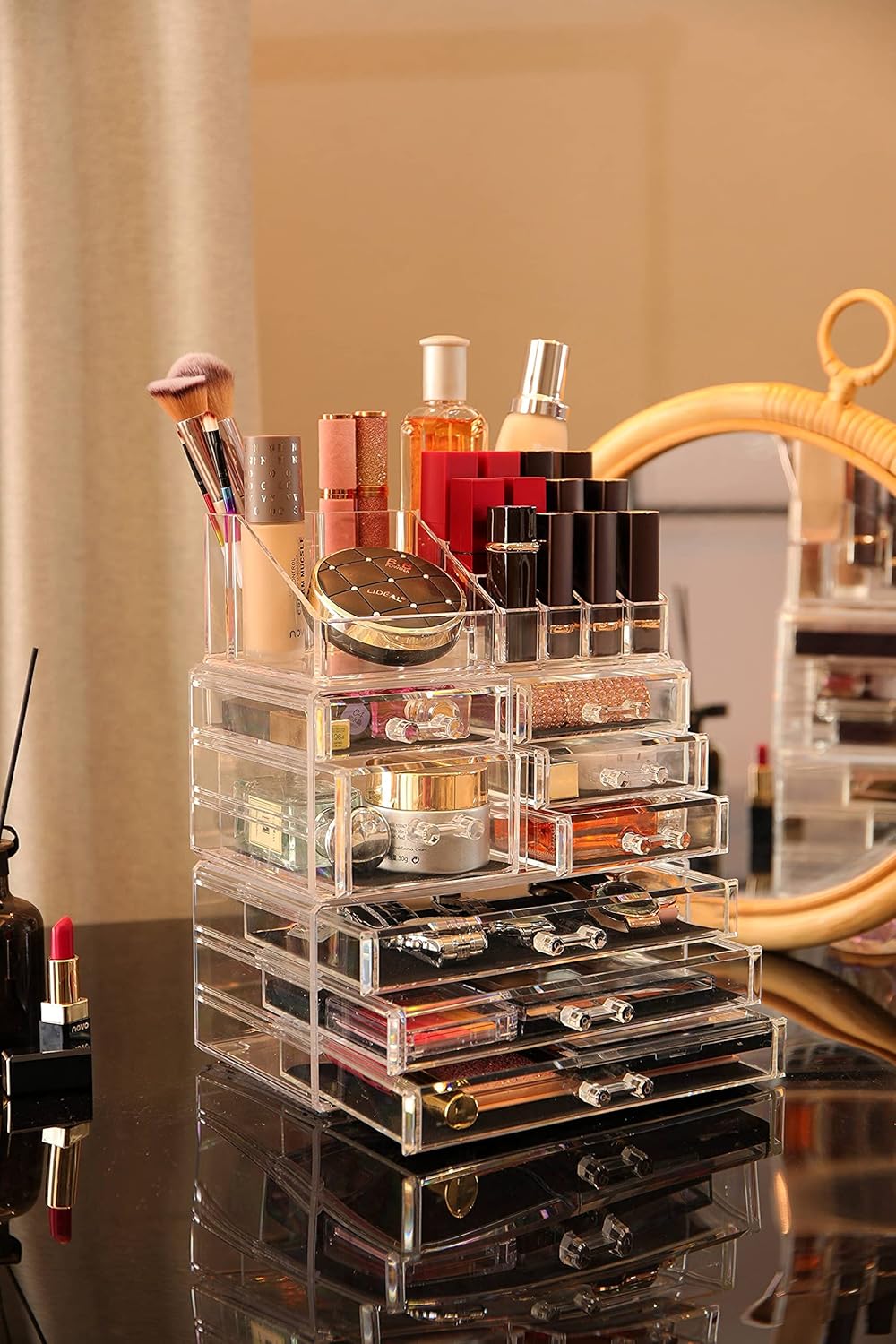 ✅With 8 drawers and 16 slots , Drawers of different sizes Meet the Storage of Palettes, Perfumes, Lipsticks, Lip glosses, nail polish, jewelry and make up brushes Moisturizers Masks Lotions