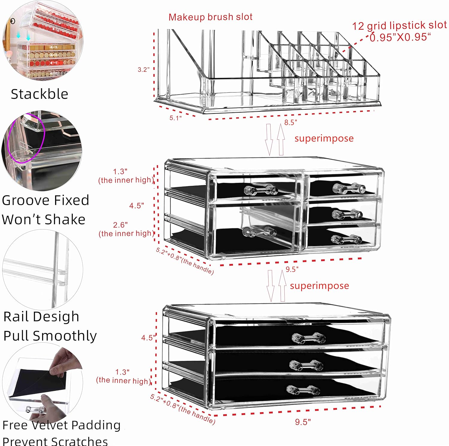Cq acrylic Clear Makeup Organizer And Storage Stackable Large Skin Care Cosmetic Display Case With 8 Drawers Make up Stands For Jewelry Hair Accessories Beauty Skincare Product Organizing,Set of 3