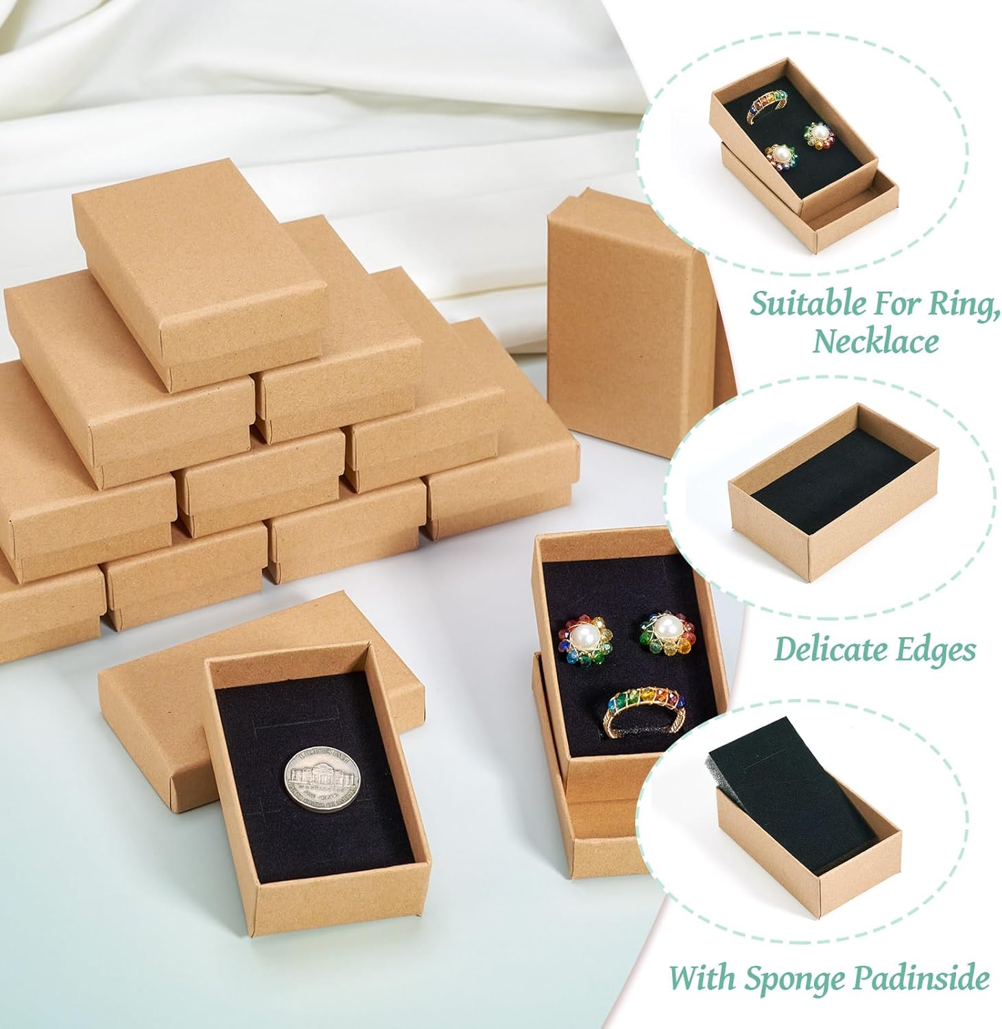 Craftdady 24pcs Tan Jewelry Gift Boxes 3 x 2 x 1 Inch Small Gift Boxes Cardboard Necklace Boxes Earring Pendants Boxes Rectangle Sponge Ring Boxes for Bracelet Jewelry Display