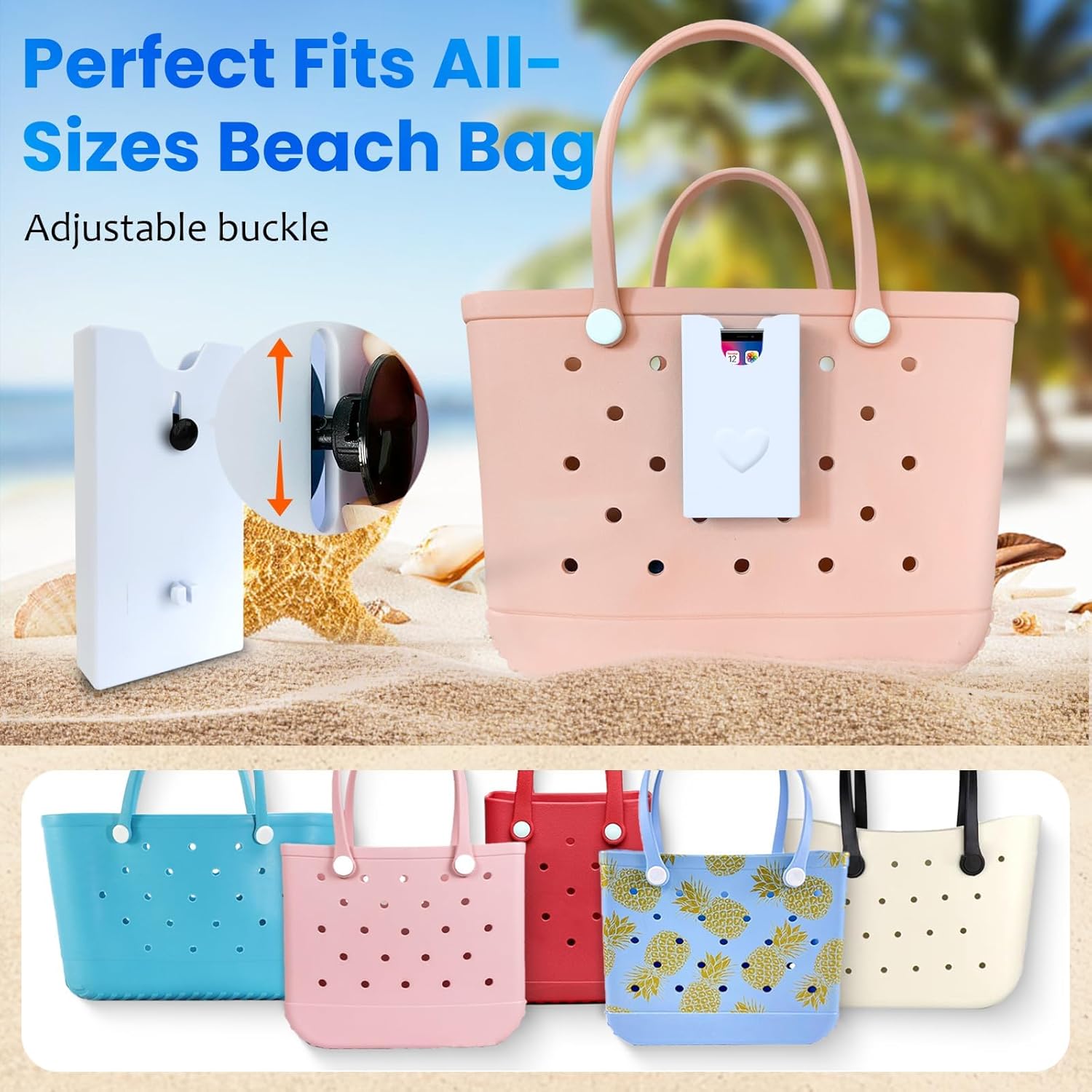 【Easy to Install】Our cell phone holder has two buttons on the back, one of which is adjustable for movement, and it stays firmly in place and inserts perfectly on the beach bag!