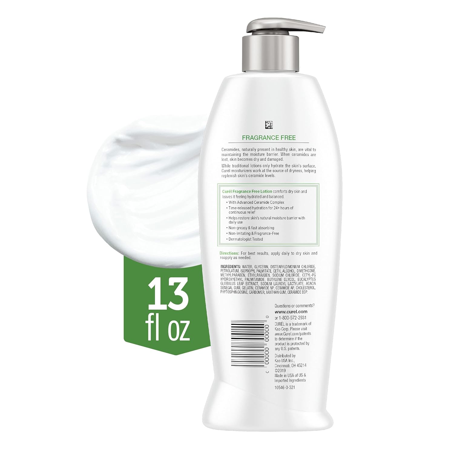 Curel Fragrance Free Body Lotion, Unscented Dry Skin Moisturizer for Sensitive Skin, with Advanced Ceramide Complex, Repairs Moisture Barrier, 13 Ounce (Pack of 3)
