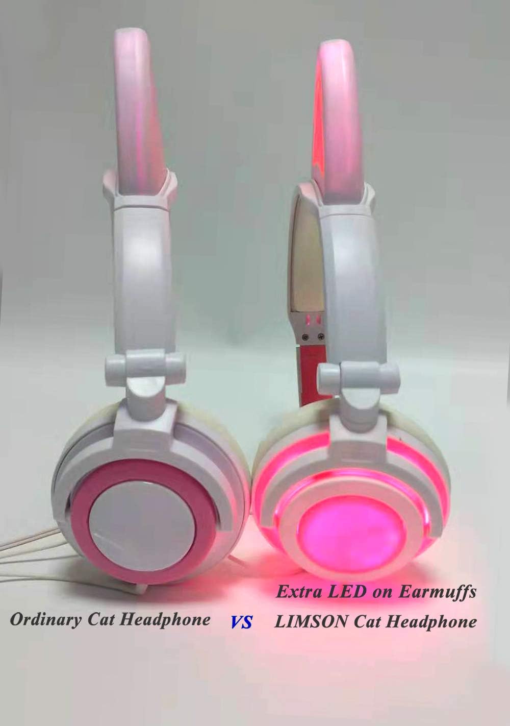 5. More cooler lighting design, the ordinary cat headphone are with just LED light on cat ears, but we added 2 LED might in earmuffs, so the cover shell of the earmuff can also light up to makes it cooler with extra fun.