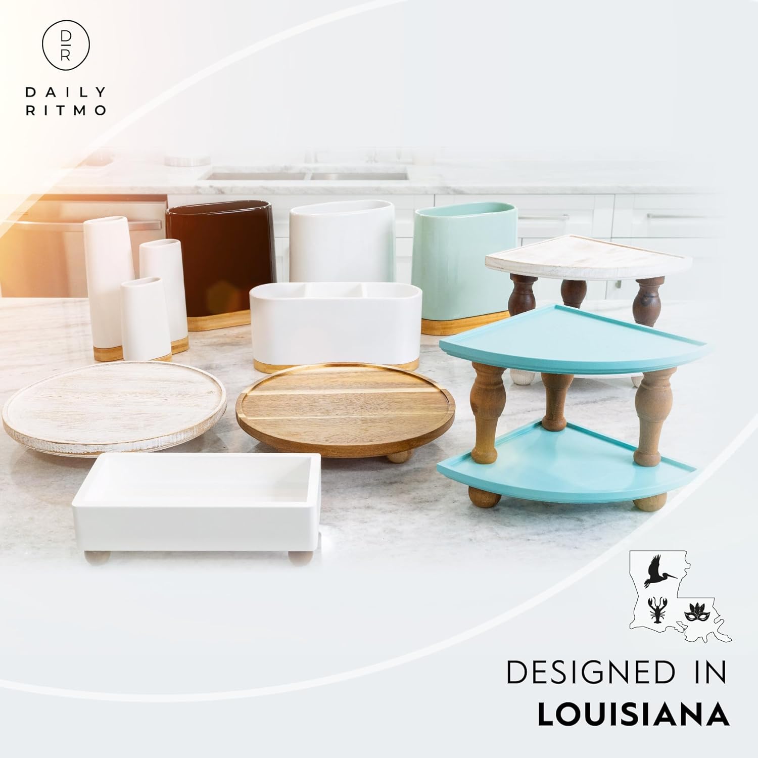 DAILY RITMO Turquoise Teal Corner Counter Wood Shelf | Aquamarine Stackable Countertop Bathroom Organizer | Farmhouse Blue Tray Riser Wooden Shelves 2-Pack | Aqua Kitchen Decor Accessories