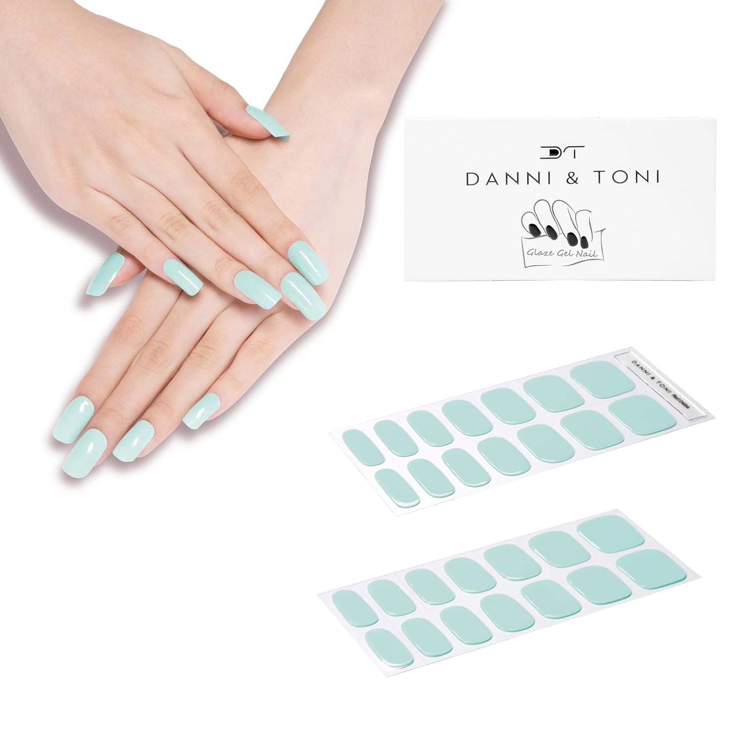 DANNI & TONI Semi Cured Gel Nail Polish Strips (Bluish White) Gel Nail Stickers Gloss Nail Strips 28 Stickers