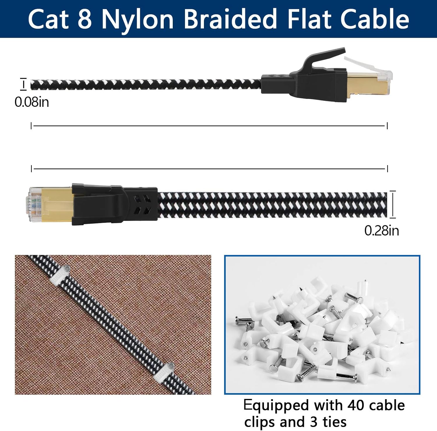 Cat 8 Nylon Braided Long Ethernet Cable have superior performance. Flat designed is more flexible structure to go through any difficult connection. Nylon Braided jacket is more reliable and flexible.