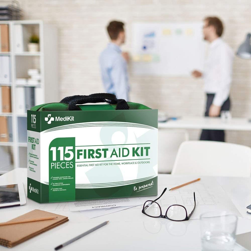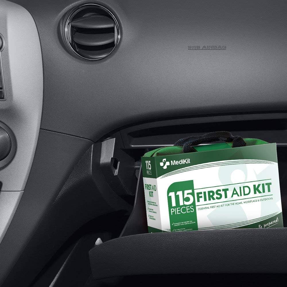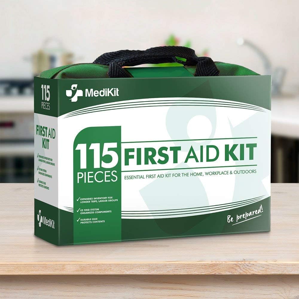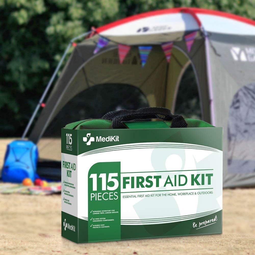 THE VERY BEST IN COMPREHENSIVE FIRST AID KITS: This premium kit has 115 essential first aid items for the home, office, work site or car. The sturdy emergency kit is a must-have for family vacations, as well as camping, hiking and backpacking adventures. The MediKit first aid box is perfect for scout troops, youth groups, church groups, recreation league sports teams and so much more!