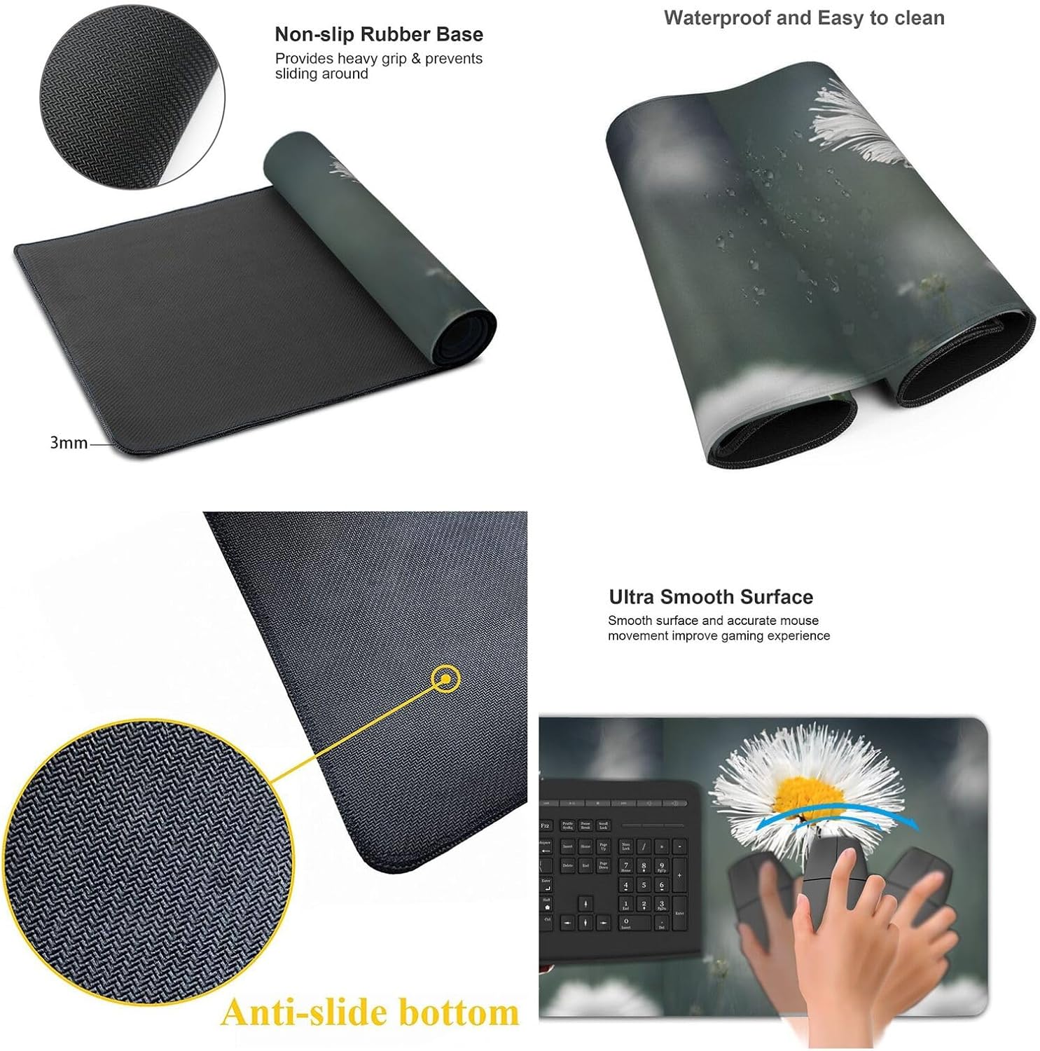 With its precise edge locking and thickened design, this desk mat provides a comfortable and smooth operating experience. It effectively prevents your mouse and keyboard from slipping or moving, enhancing your productivity and gaming performance.