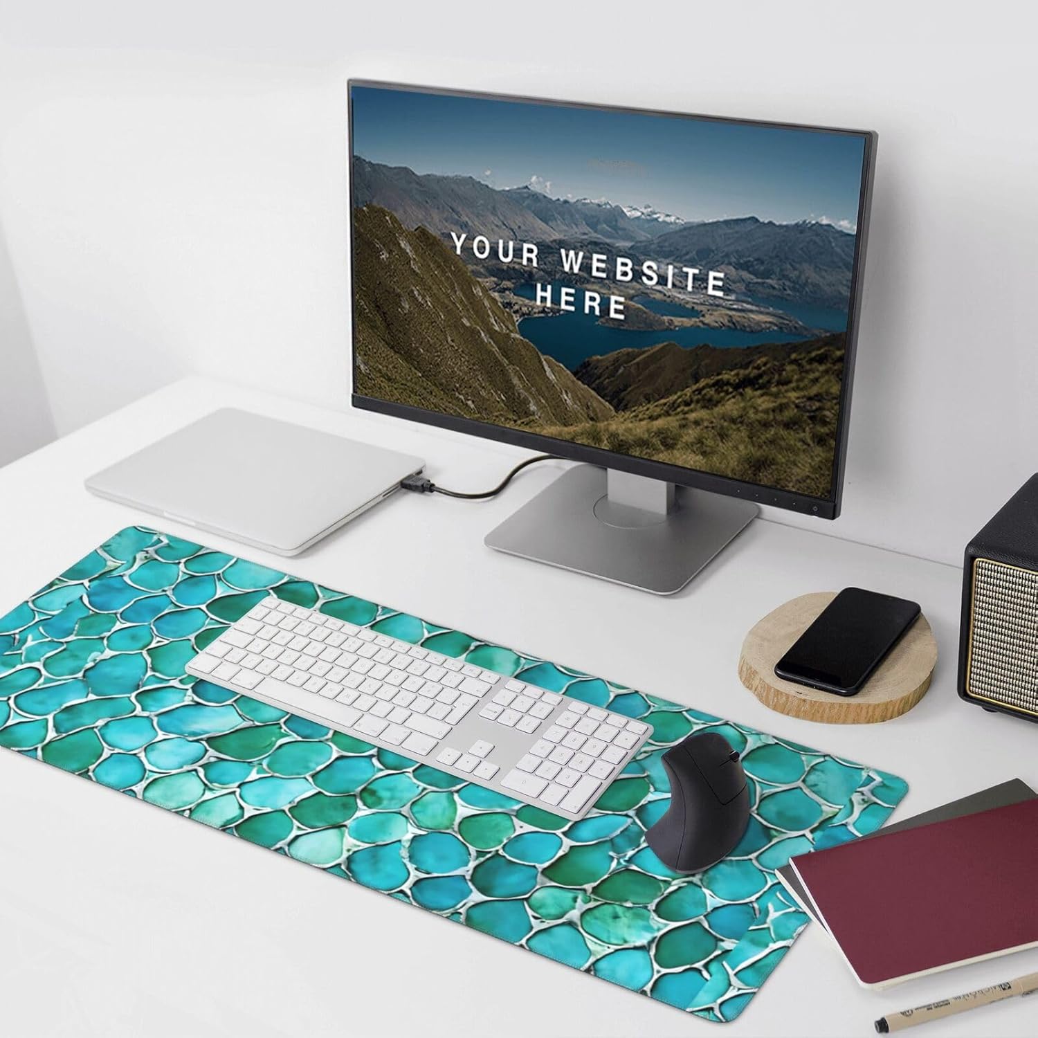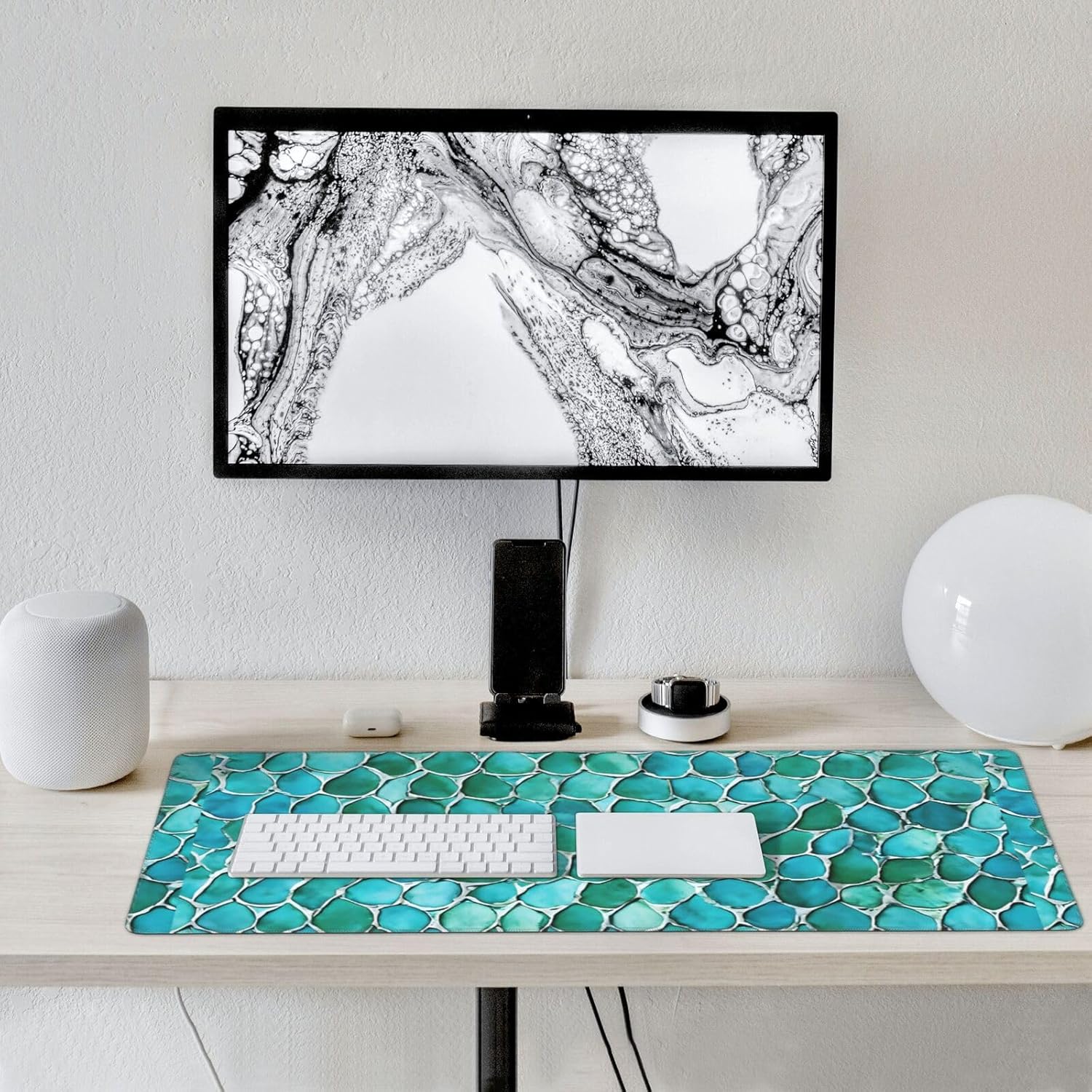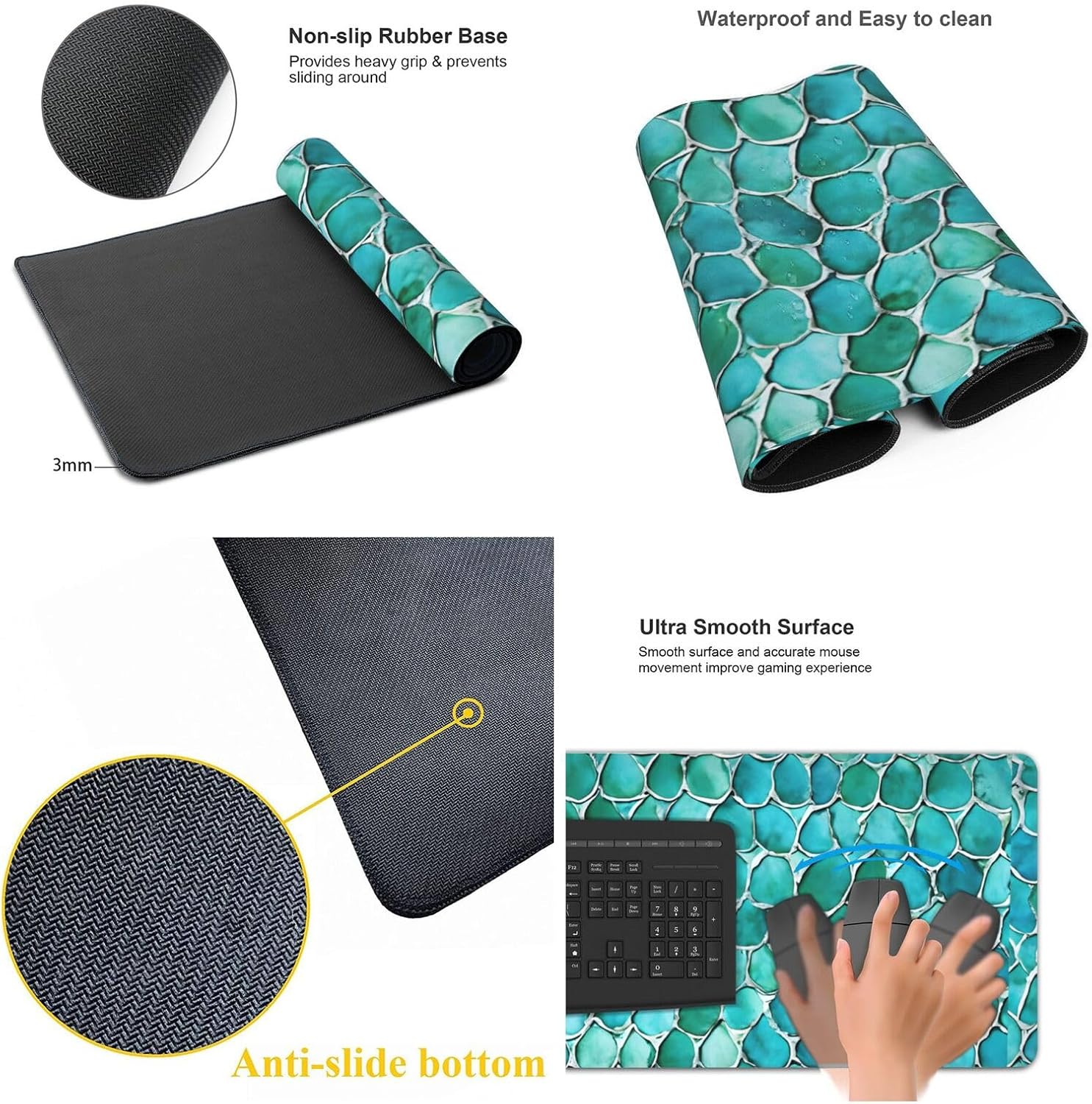 Desk Pad 35.4 x 15.7 inches Office Computer Waterproof Non-Slip Desk Mat Gaming Mouse-Pad for Women Men, Desk Computer Accessories Work from Home Essentials – Mermaid Pastel Pink Purple Aqua Teal
