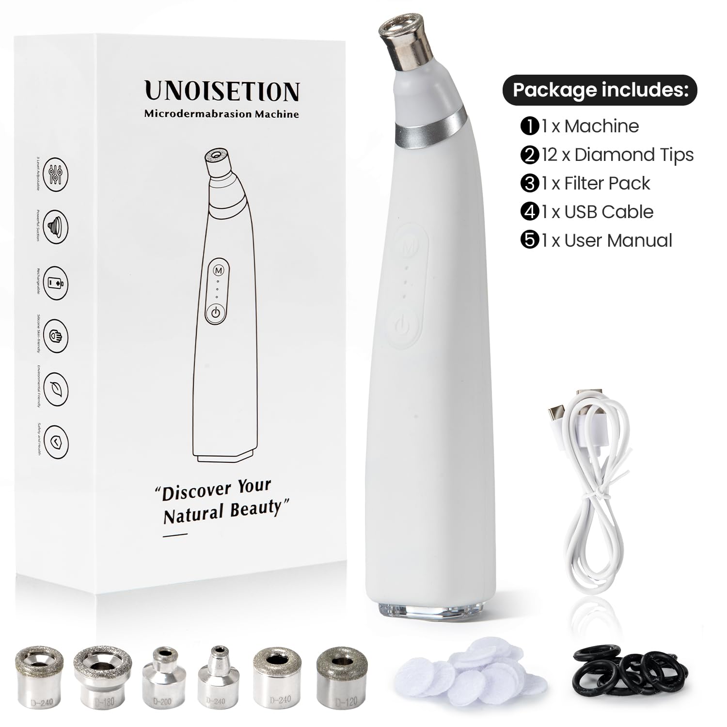 Diamond Microdermabrasion Machine, Cordless Handheld Dermabrasion Facial Machine, Adjustable Suction Facial Skin Care Equipment with 12 Diamond Tips