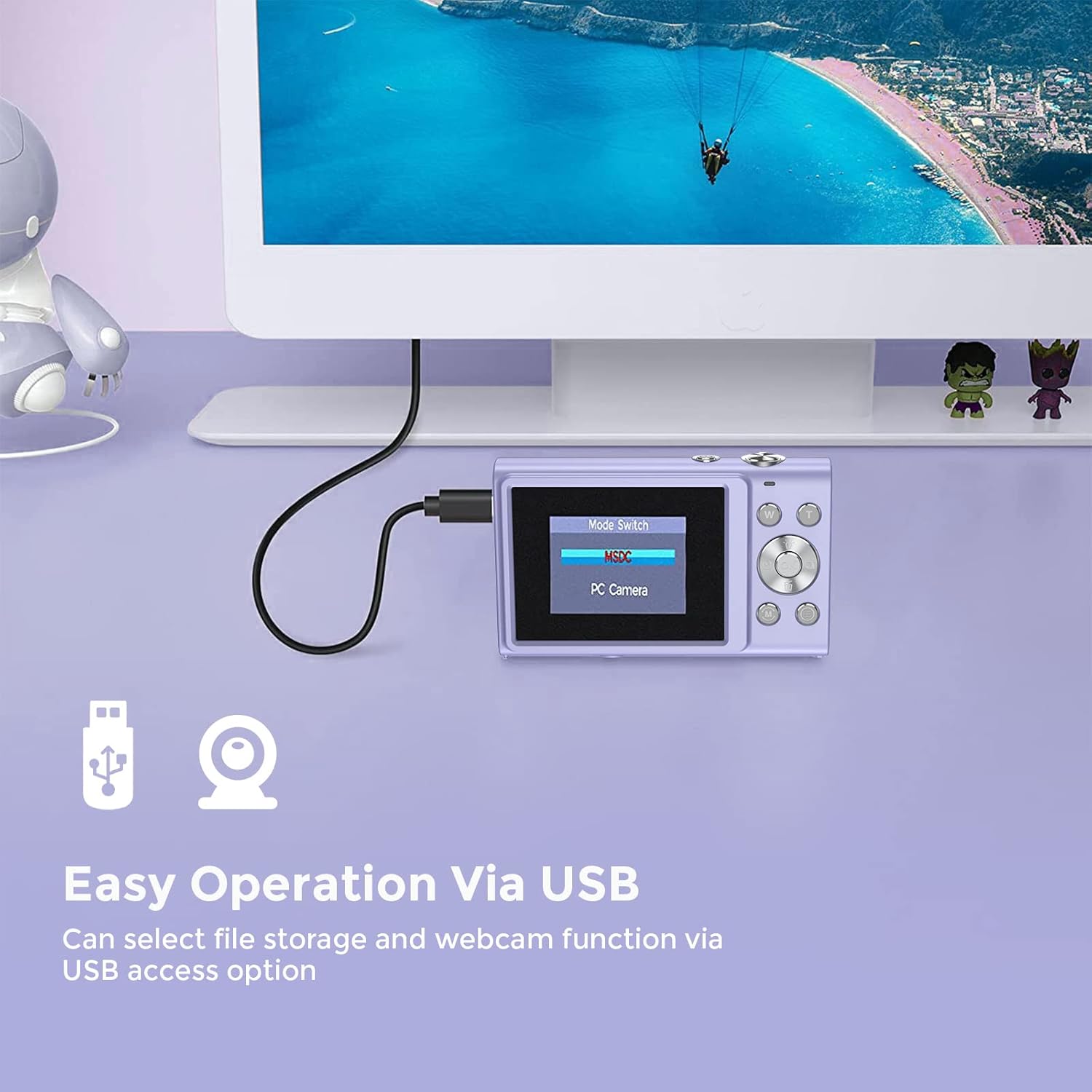 📸【Webcam function & 2.8 inch IPS screen】📸 The digital camera can be used as a webcam. With this 2.8 inch camera, you can use various social software to share your life and record exceptional moments.