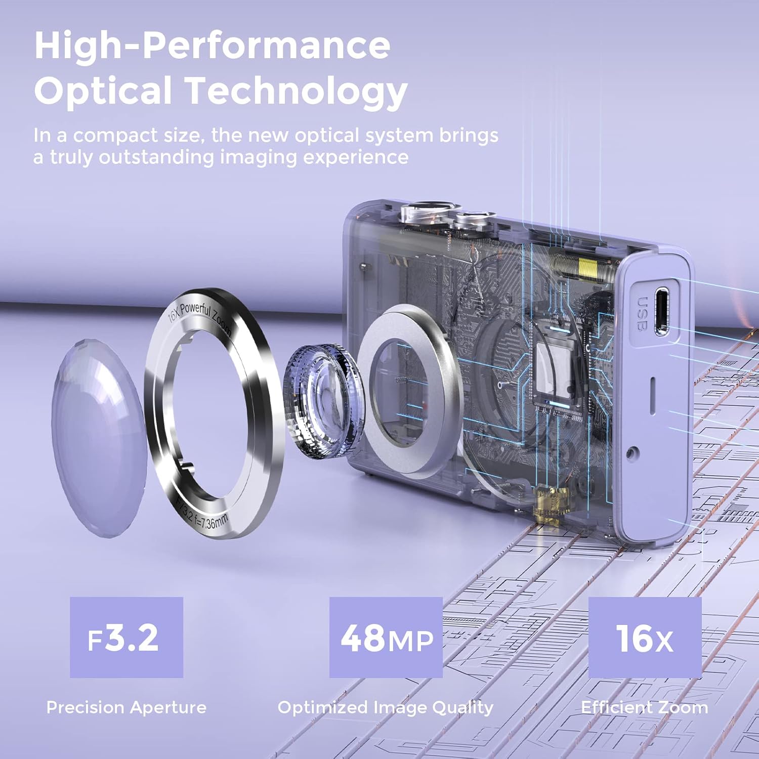 📸【48MP Digital Camera & HD2.7K】 📸 Digital camera has 48 mega pixels and supports 2.7K high resolution video, and a built-in microphone can help you take clear photos or videos and capture exciting and unforgettable moments. This portable compact camera comes with a 32GB memory card, no need for extra purchase (Please note that the memory card needs to be formatted before use),convenient for you to use this blogging camera directly.