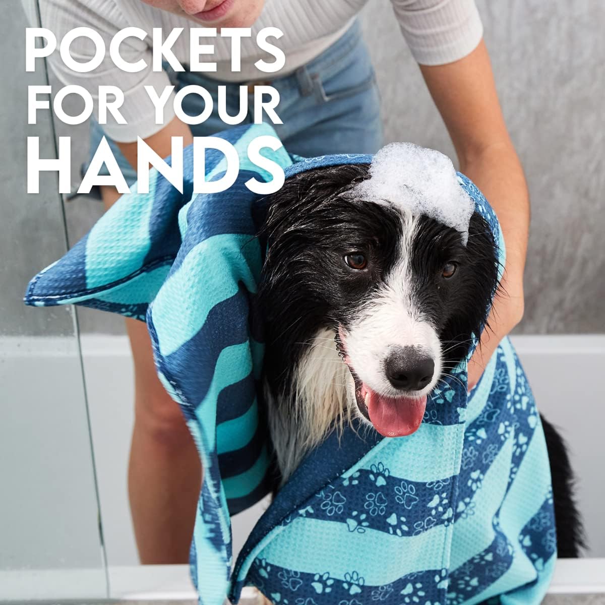 DESIGNED FOR DOGS – What makes these towels so great is their unique waffle material. Designed for dogs, it’s thicker, more absorbent, and extra durable. Each towel has 2x hand pockets to make drying your dog simpler. Comes in five different patterns