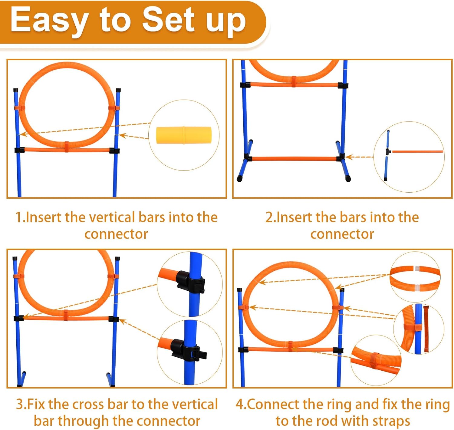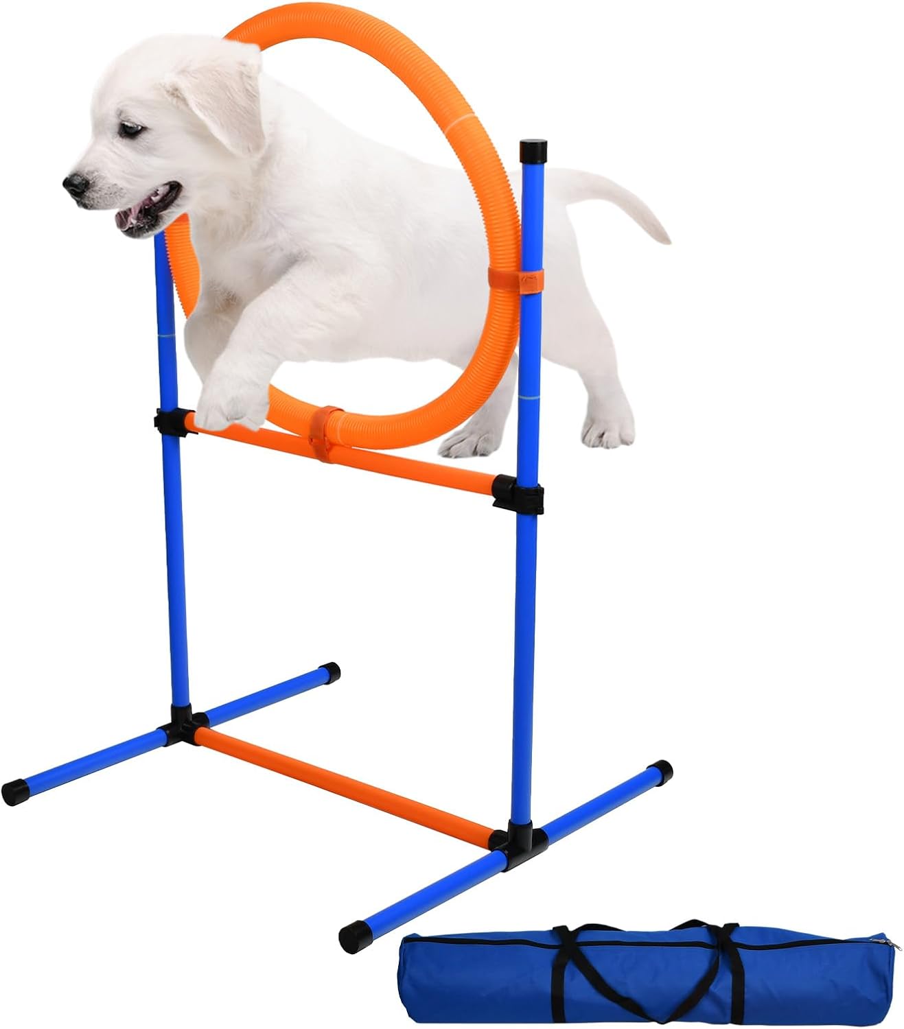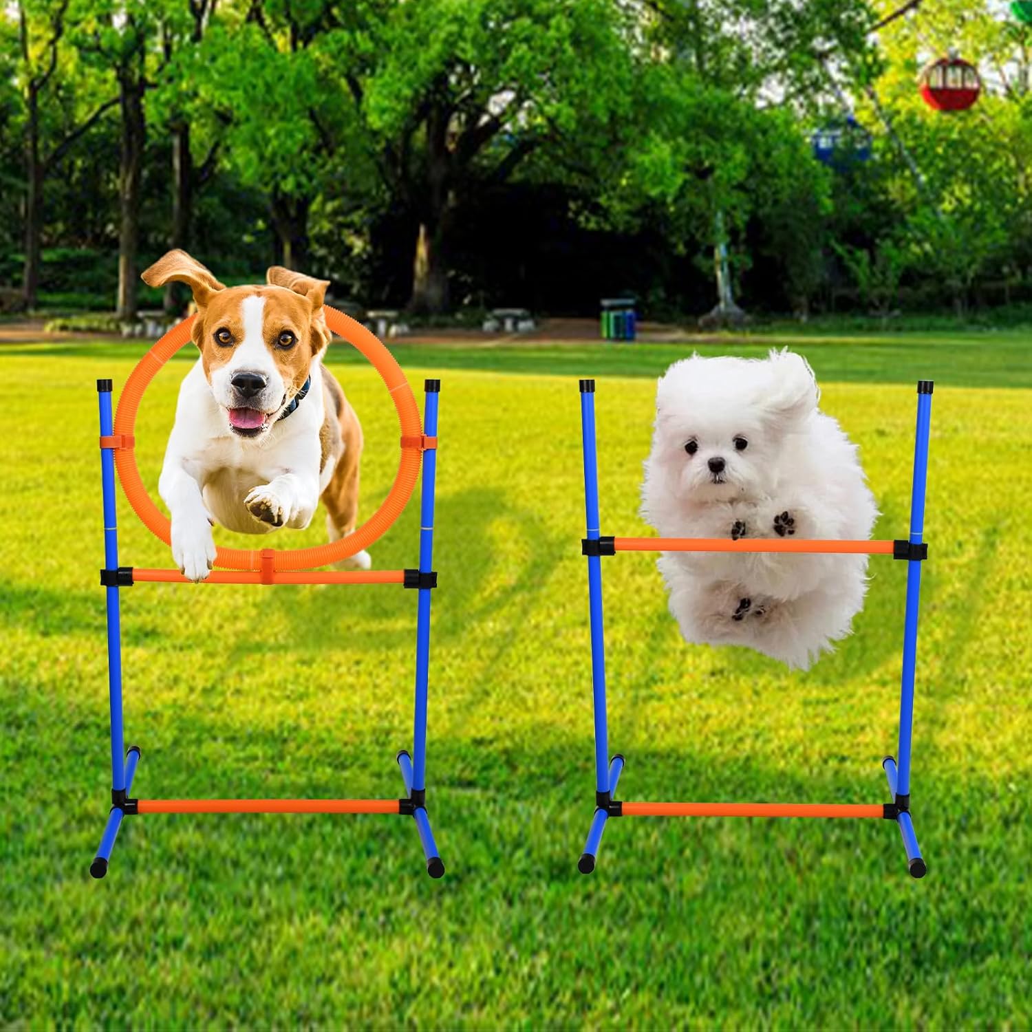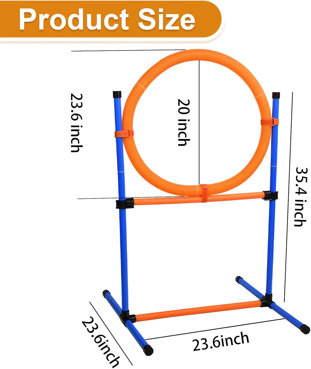 Dog Agility Equipment, 2 in 1 Dog Obstacle Course Training Starter Kit Adjustable Jump Ring/Hurdle Bar with Carry Bag