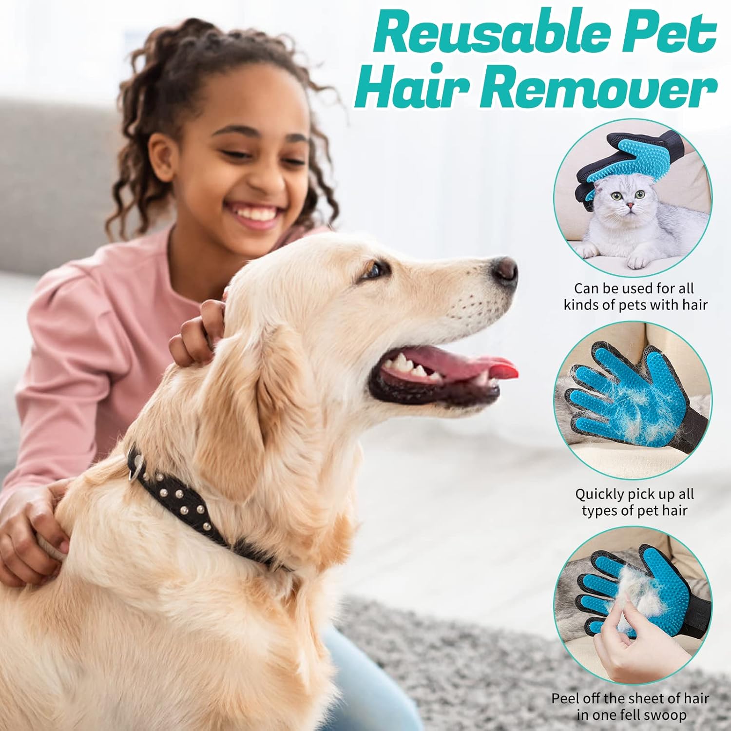 【Safe and Durable】- Made of high-quality metal blades、PP+ABS+TPR material. More efficient, Durable and smoother to use; Soft silicone gloves can ensure gentle massage and carding without painful removing of fur or scratching the pet’s skin.