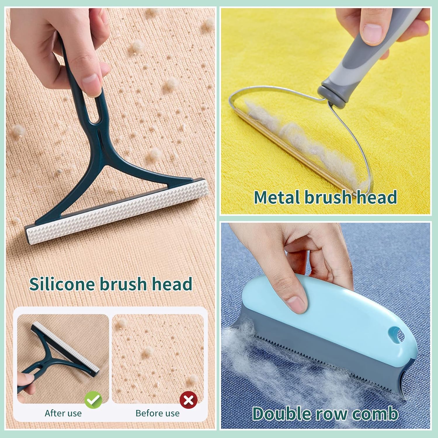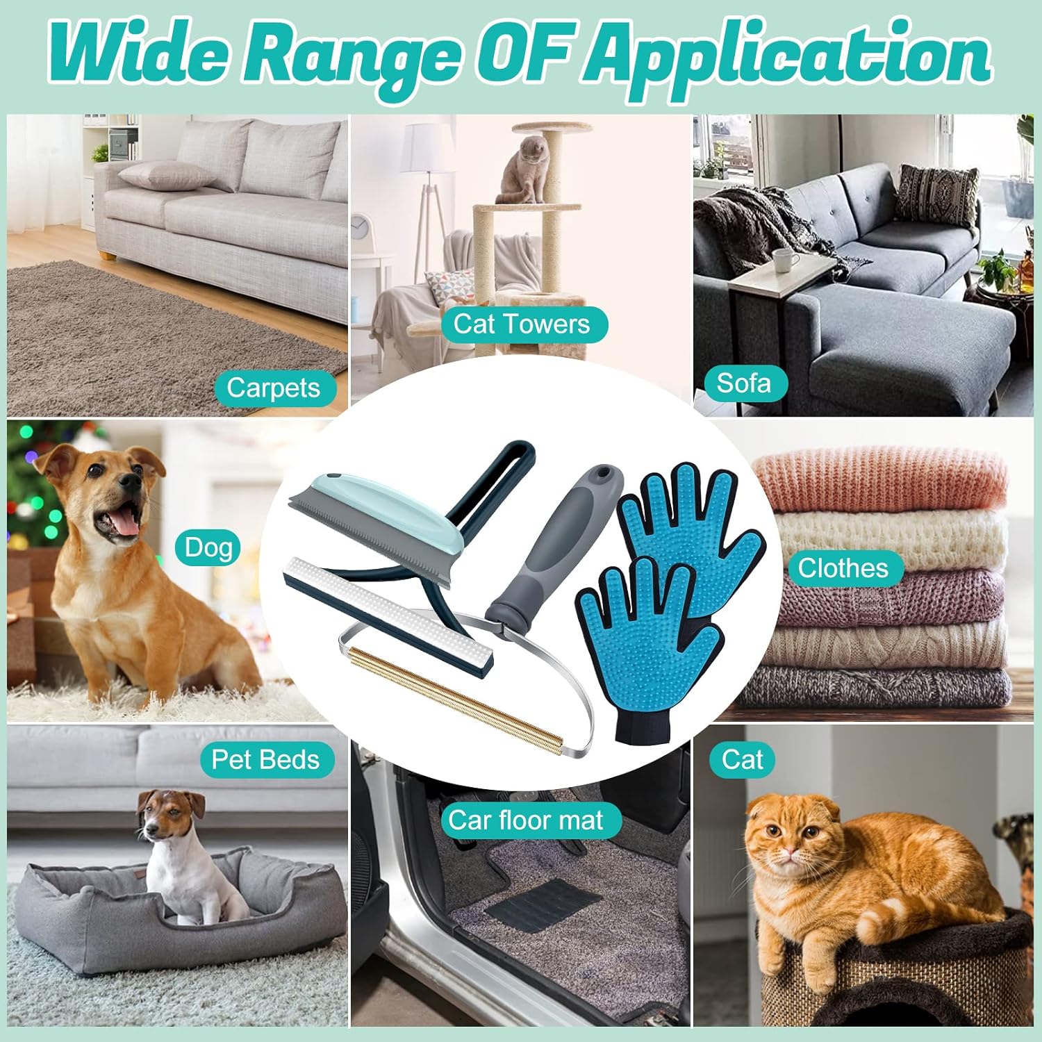 【Upgraded 5 PCS Remover Tool Set】- The package contains a metal pet hair remover, a silicone Y-shaped fur remover, a TPR cloud-shaped hair brush and two pet gloves, different tools for slightly different cleaning effects. Our aims to use multiple tools together to meet different needs, to achieve the effect of deep cleaning of the most embedded hair, whether on the sofa, pet tower, carpet or car mats, finally save your time and energy.