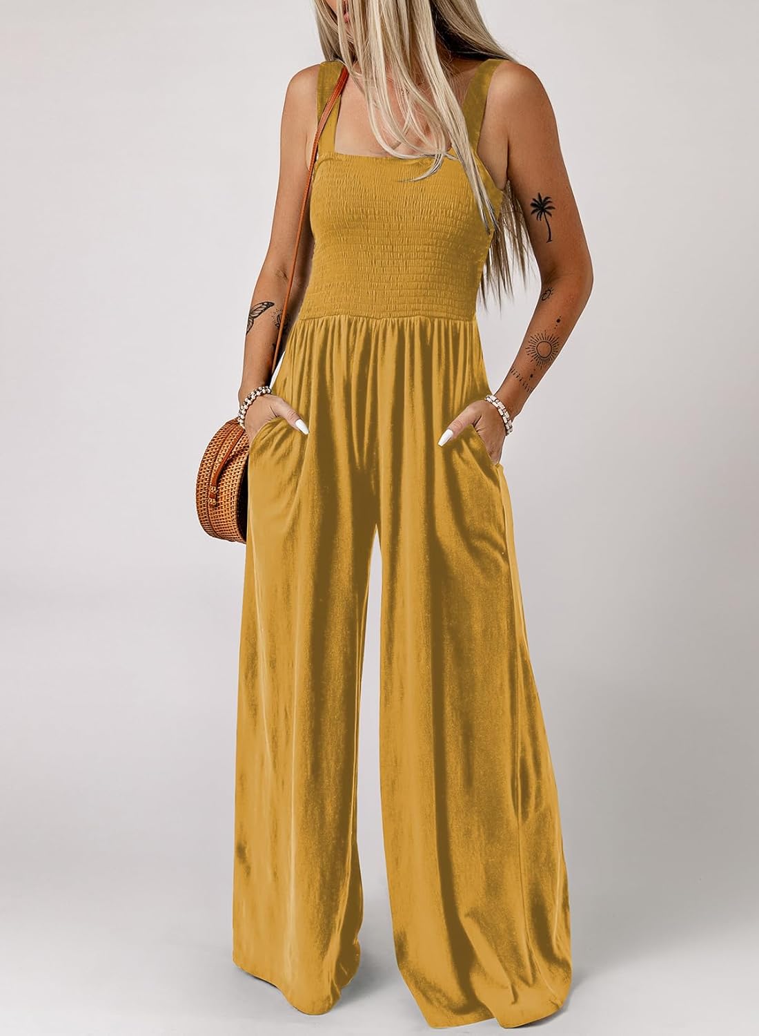 Dokotoo Women’s Casual Loose Overalls Jumpsuits One Piece Sleeveless Wide Leg Long Pant Rompers With Pockets