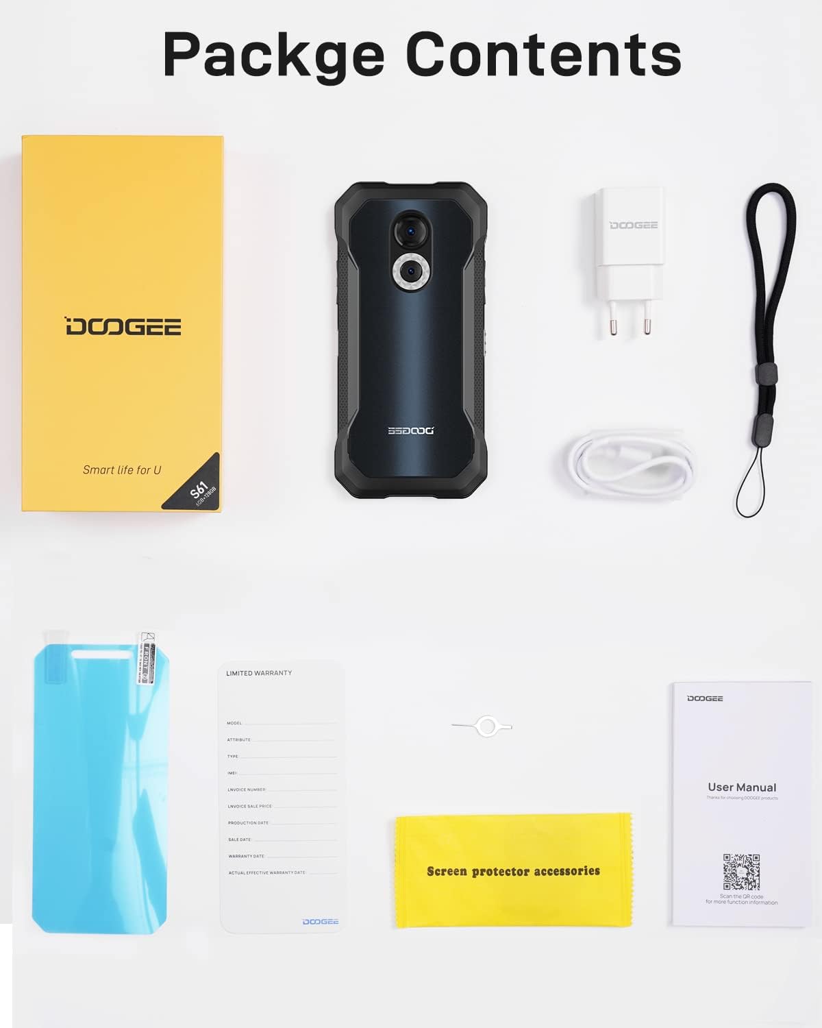 【All-day Massive Battery Life】DOGGEE S61 unlocked cell phone is equipped with a 5180 mAh large battery to provide all-day power for your outdoor adventures or long shift work without interruption. Long-lasting rugged phone battery uses up to15 days on standby, 2-3 days of normal use, and 24 hours of calling.
