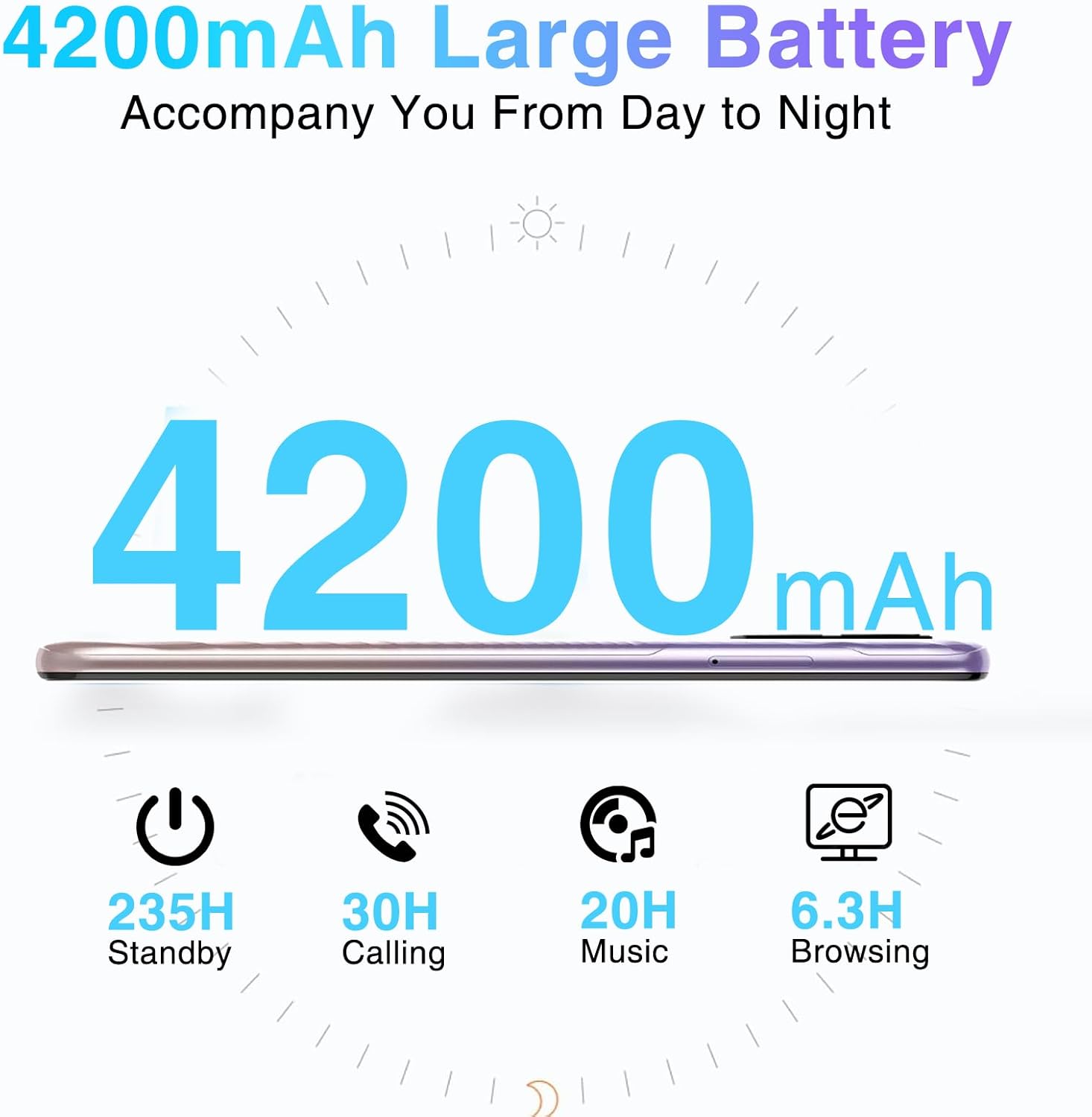 🌋🌋Powerful 4200mAh Battery: The DOOGEE N50S unlocked phone is equipped with a long-lasting 4200mAh battery, ensuring extended usage time and providing up to 235 hours of standby, 30 hours of calling, and 20 hours of music playback. Stay connected and entertained without worrying about running out of battery.