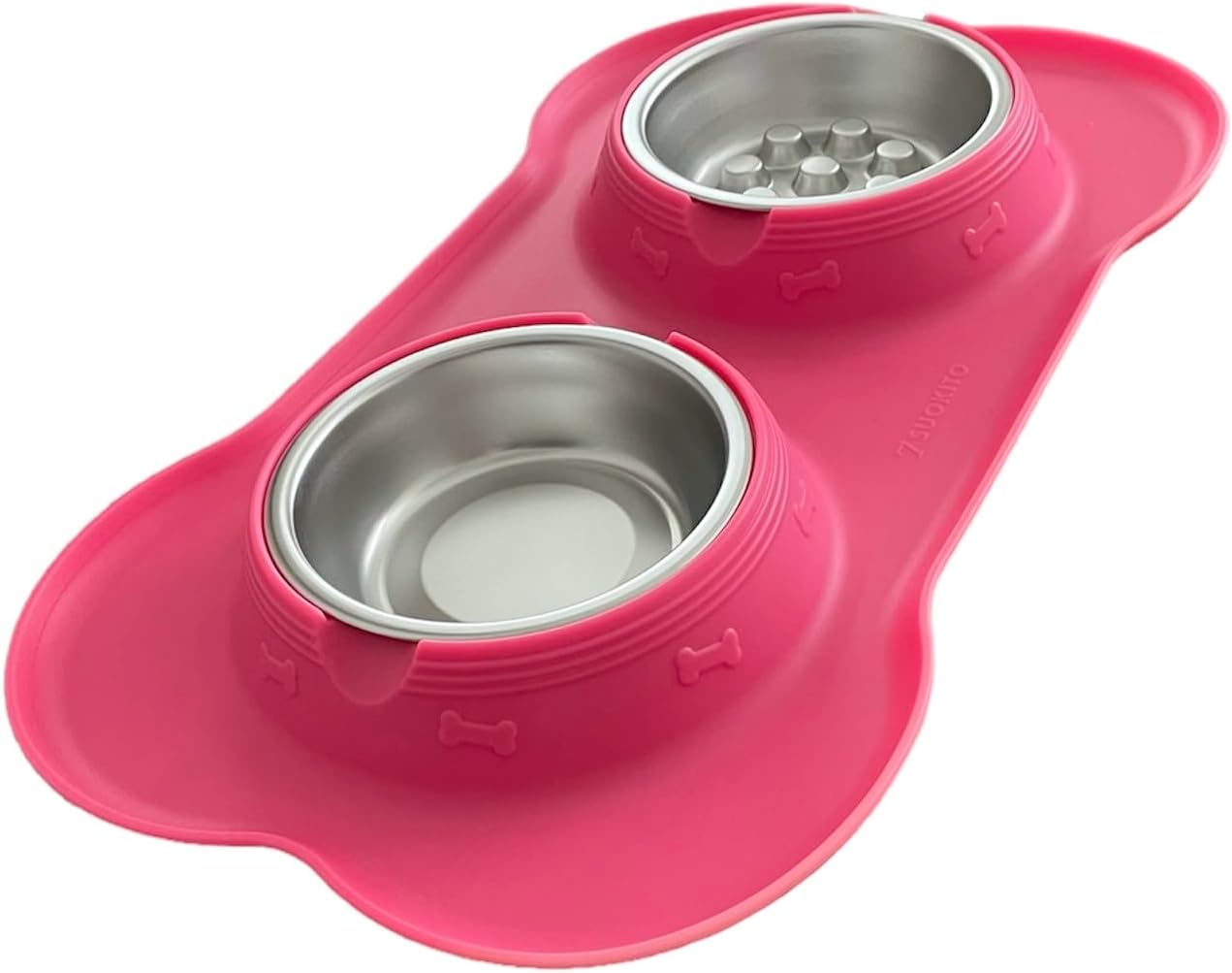 Double Pet Bowl with Silicone Mat with slow feeder. Water / Food