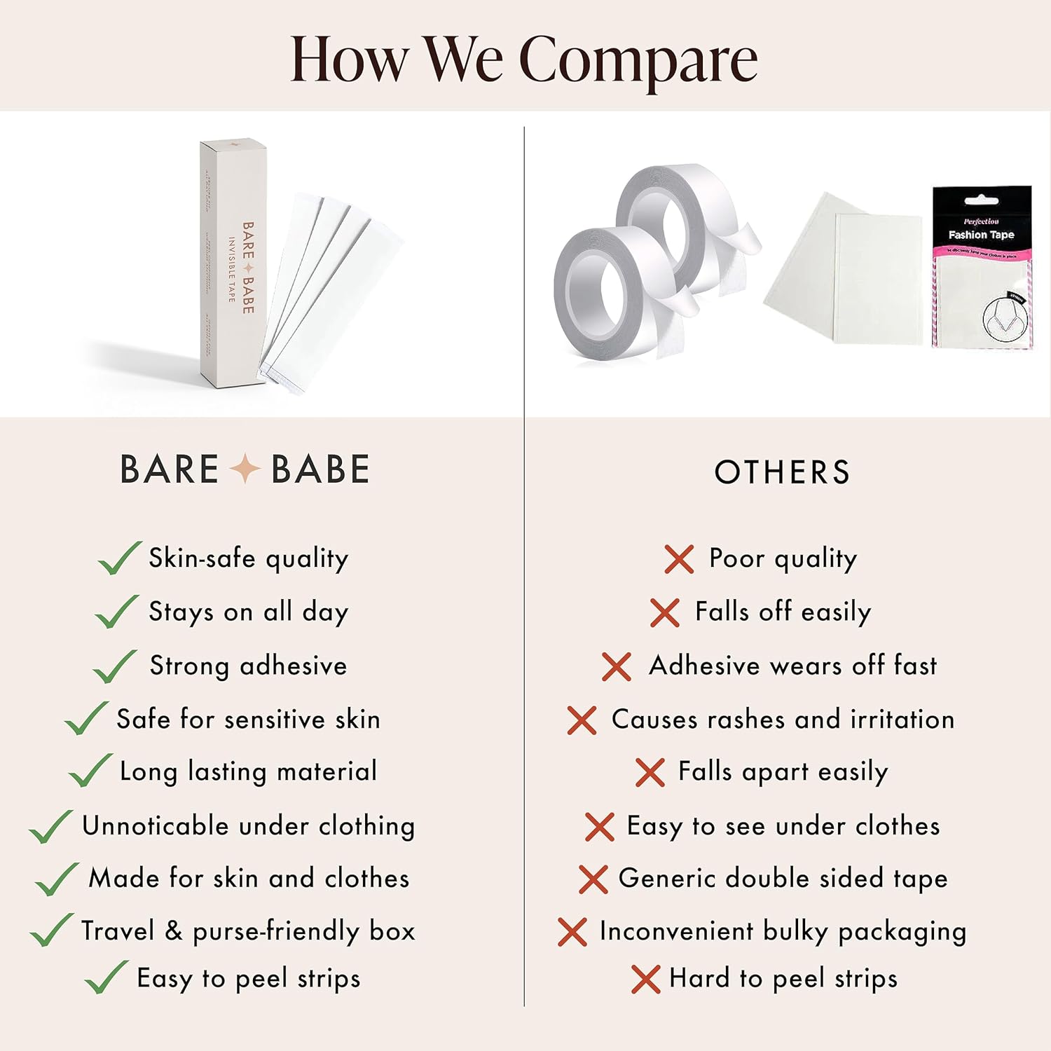 Double Sided Tape for Clothes and Body – Adhesive Fashion Tape for All Skin Shades – Transparent Clear Body Tape for Women’s Clothing – Hypoallergenic Fabric Tape for Clothes – 50 Strips