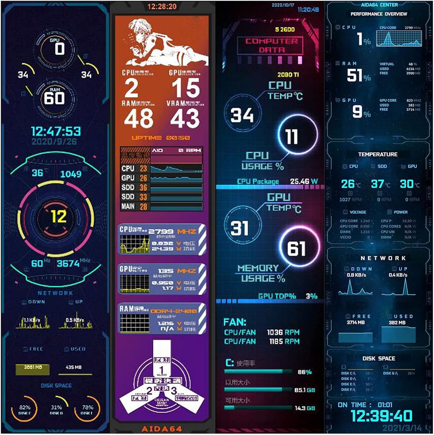 【Computer Display】: Not only can display CPU, GPU, RAM usage and temperature, but also internet speed, date, time, volume, weather forecast.