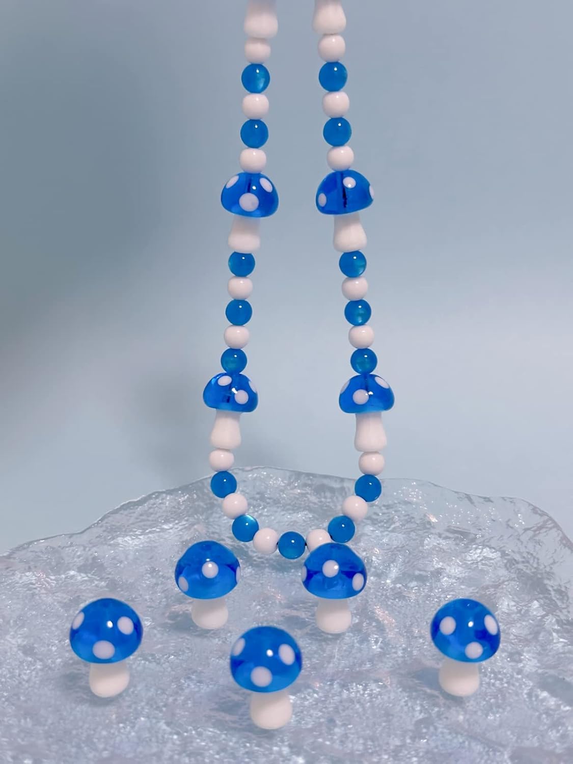 This Blue Mushroom Phone Charm features exquisite mushrooms for a fresh, trendy look.