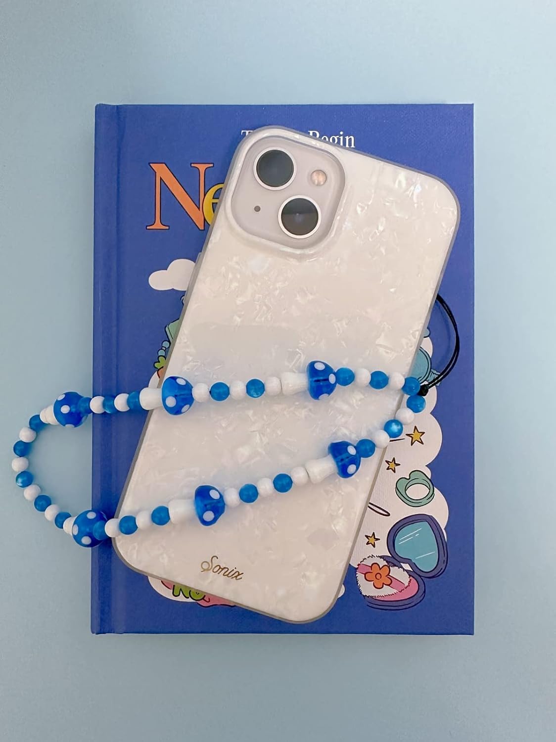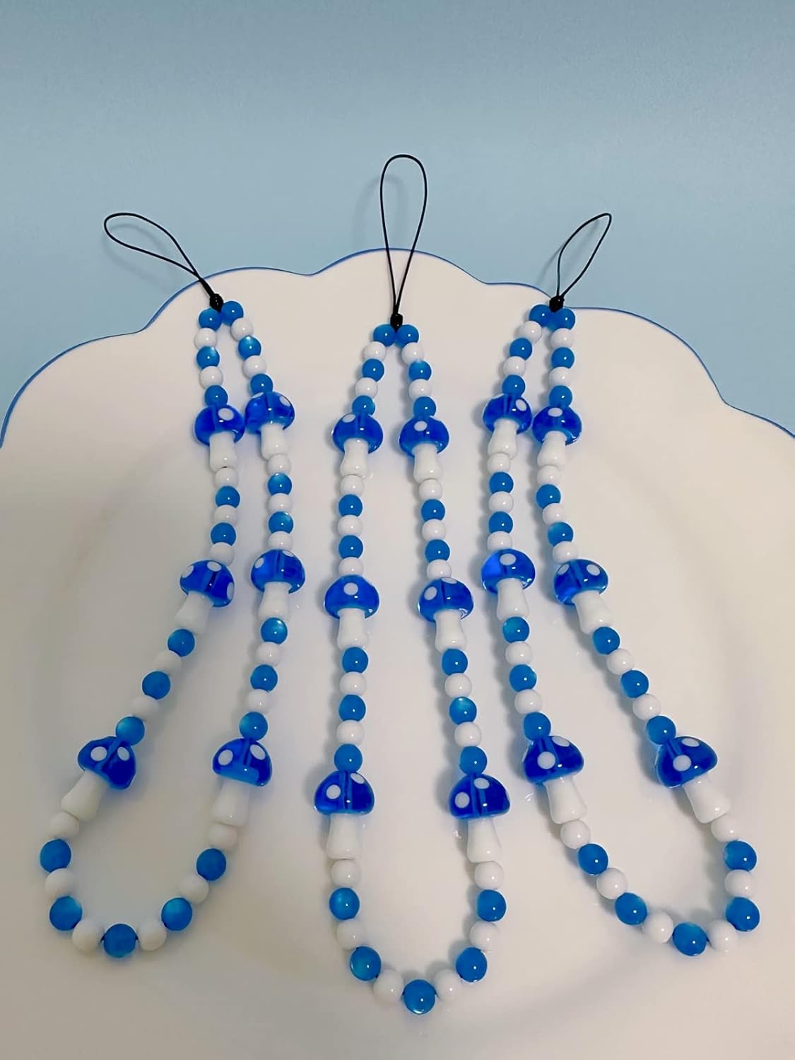 Drawwind Phone Charm Strap Universal Cell Phone Lanyard Wrist Strap Beaded Phone Chain String Handmade Phone Case Accessories for Women Girls (Blue Mushroom)