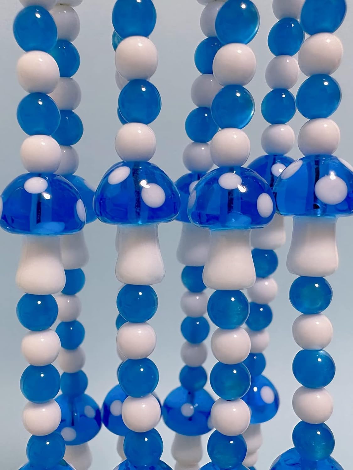 Made of lampwork glass mushrooms, acrylic beads and resin beads. Assembled with strong string for added durability.