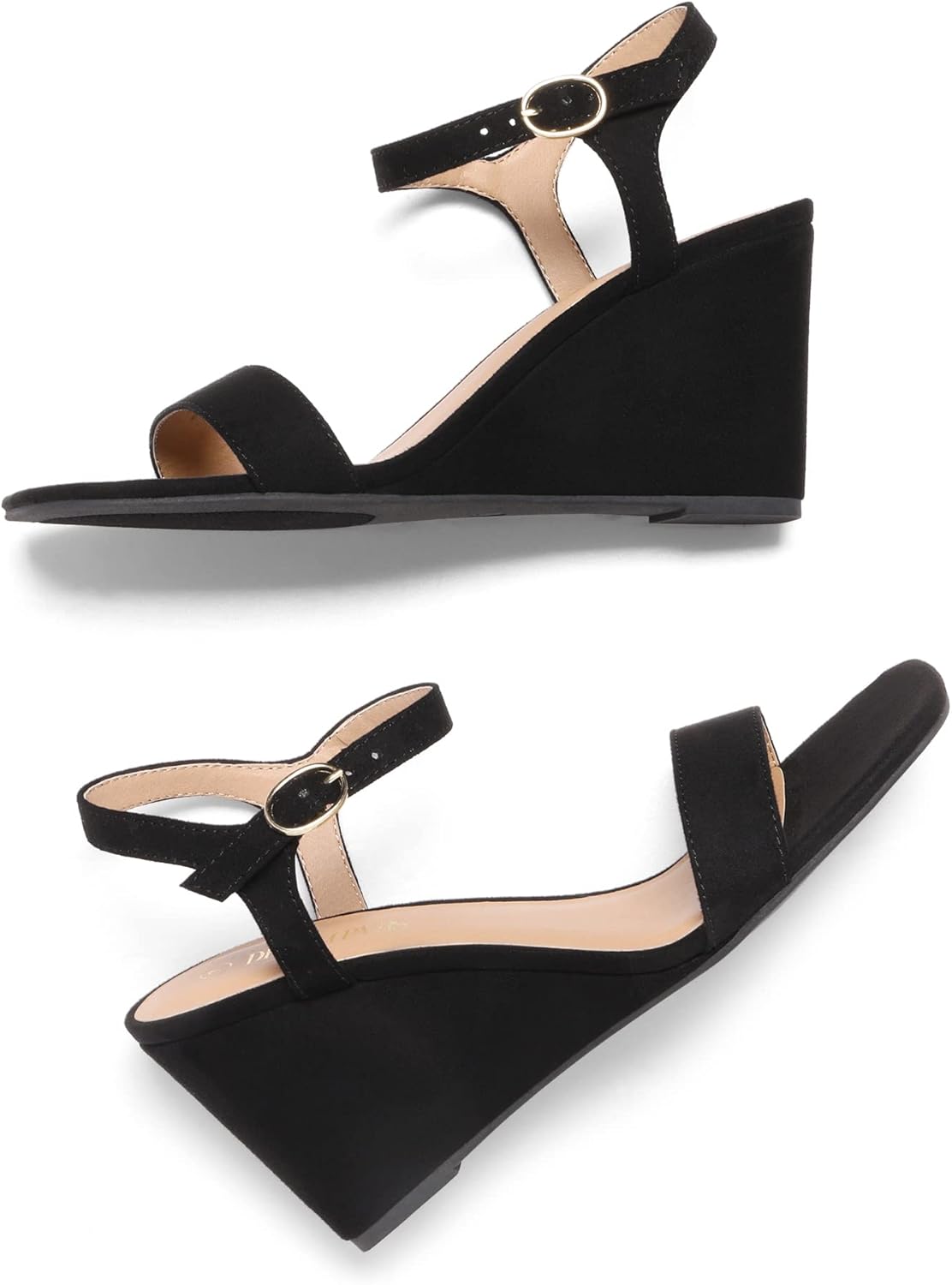DREAM PAIRS Women’s Casual Dressy Wedge Sandals Cute Square Toe and Buckle Ankle Strappy Slingback Wedding Shoes