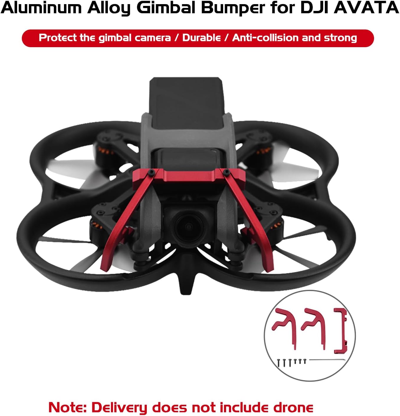 【Exclusive Design】The drone gimbal bumper is specially designed for DJI Avata. The delivery list includes gimbal bumper x 1 (set), screws x 6, and screwdriver x 1.