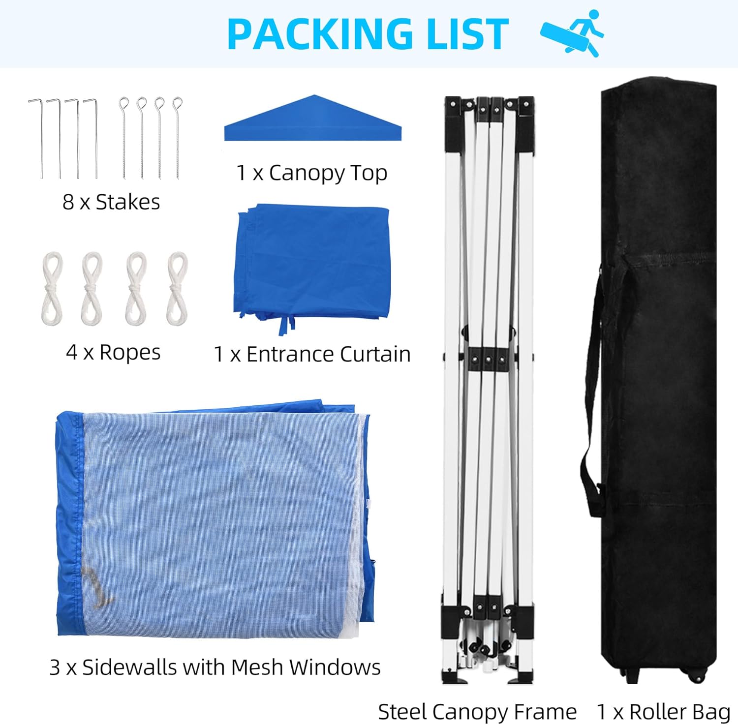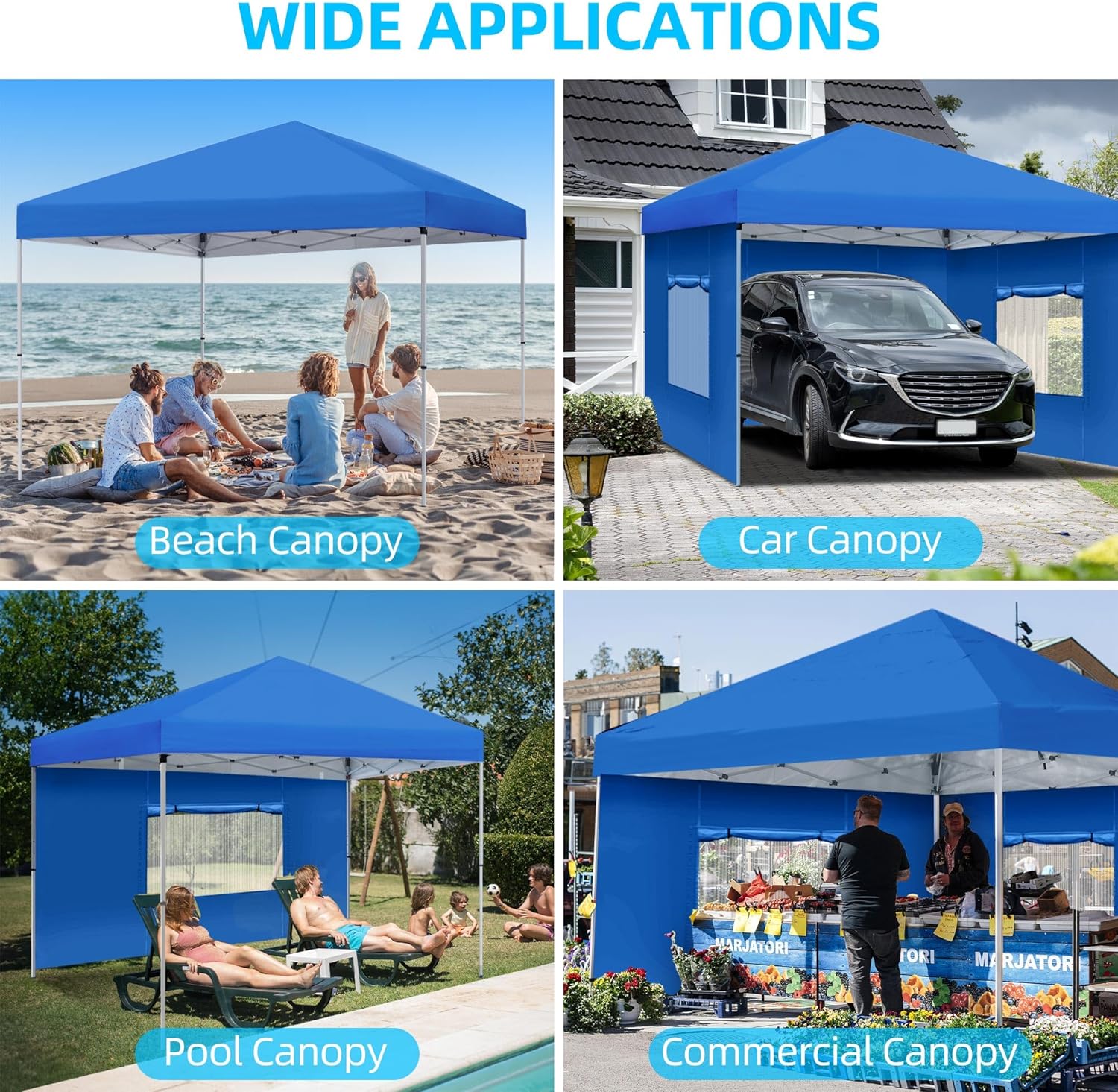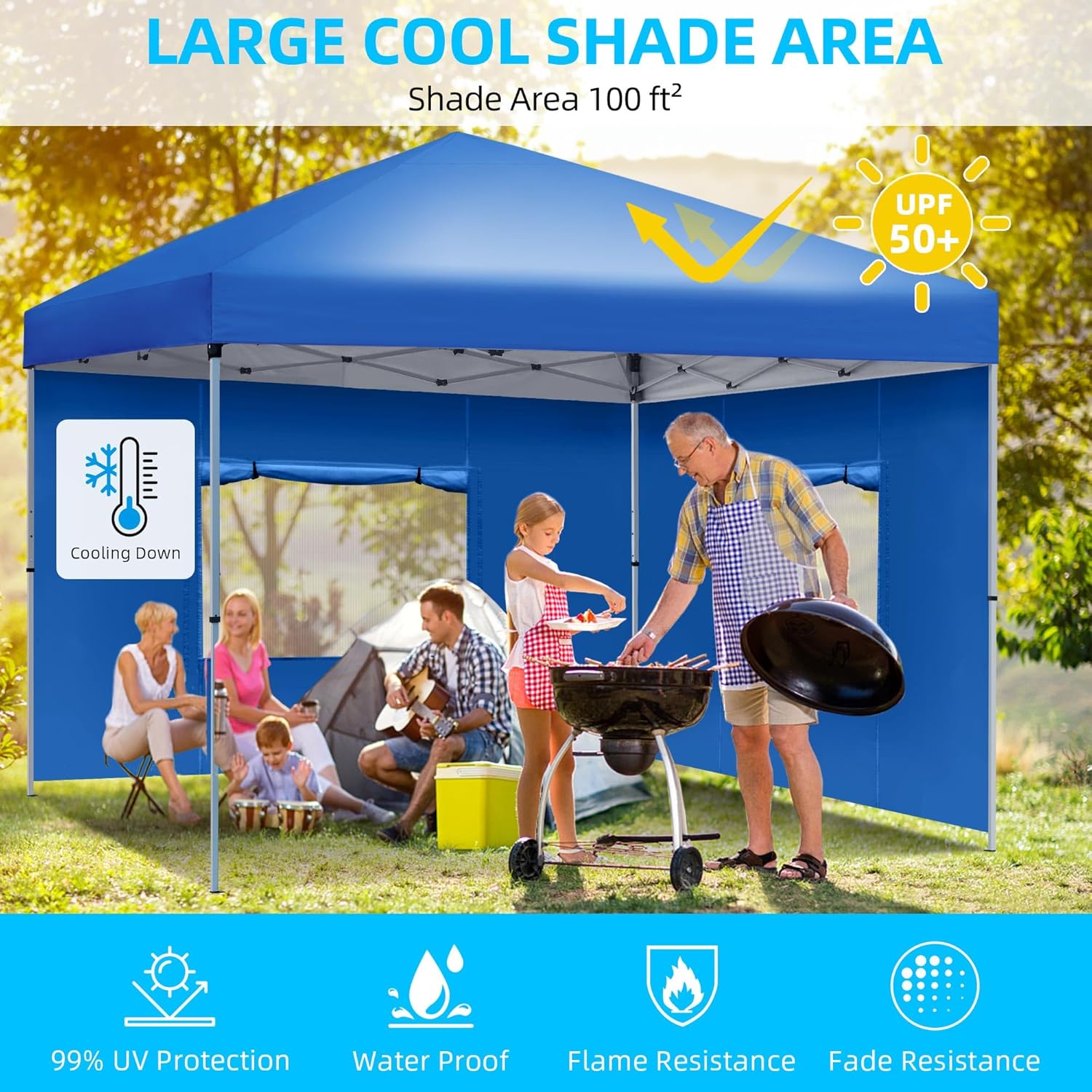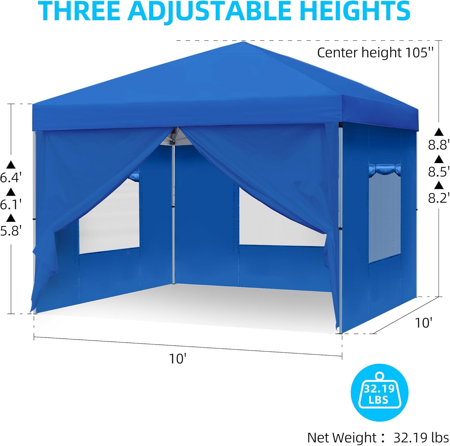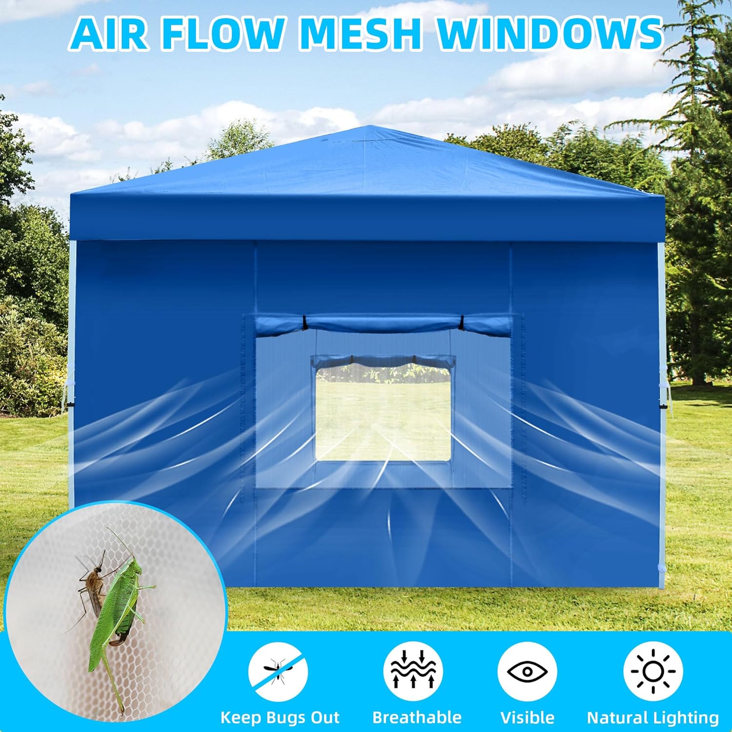 DWVO 10×10 Pop Up Canopy Tent with 4 Removable Sidewalls, Easy Set-Up Outdoor Canopy with 3 Mesh Windows, 4 Ropes & 8 Stakes and 1 Carry Bag for Patio, Party, Exhibition, Picnic, Market(Blue)