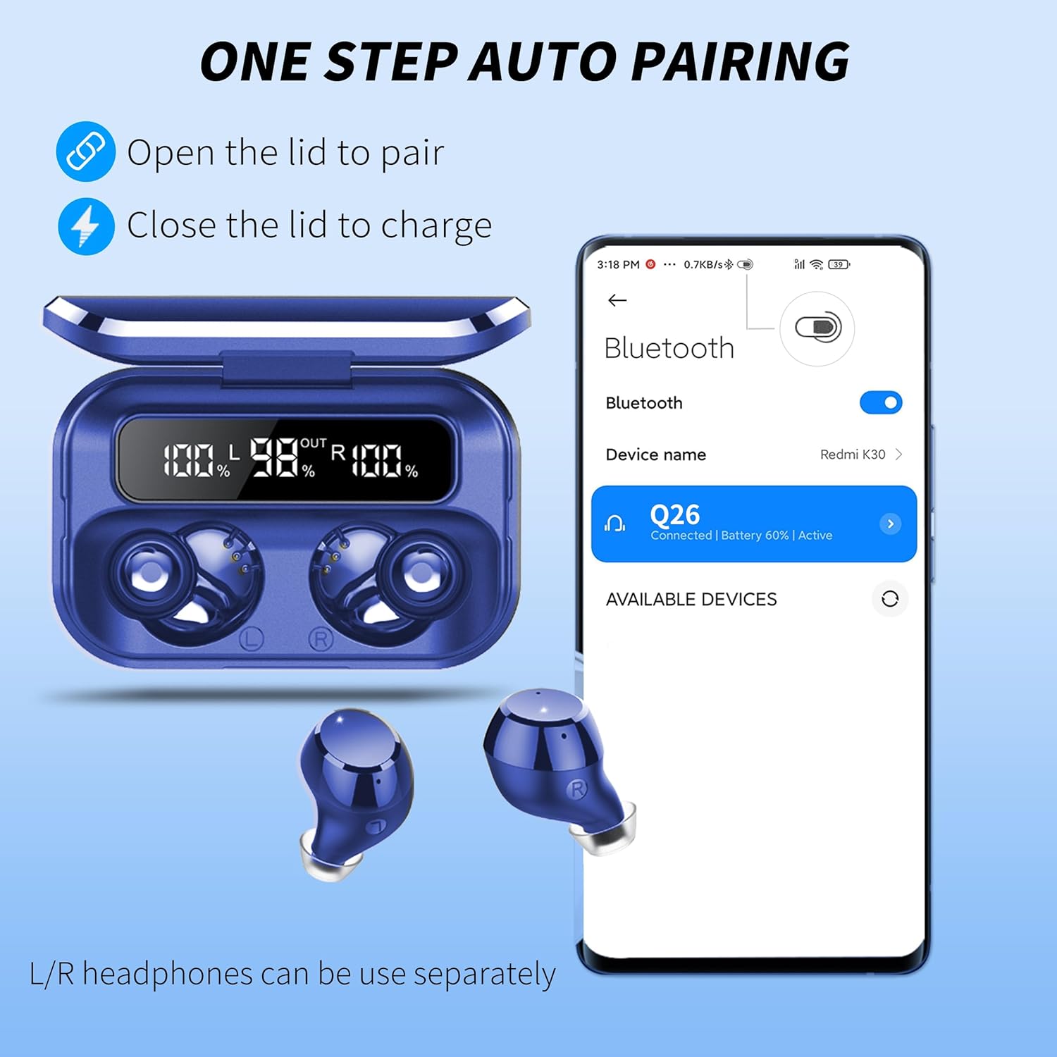 Universal Compatibility : Q26 wireless earbuds compatible with most wireless music players, including iPhone, Samsung, Huawei, Android smartphones, PC and Mac.