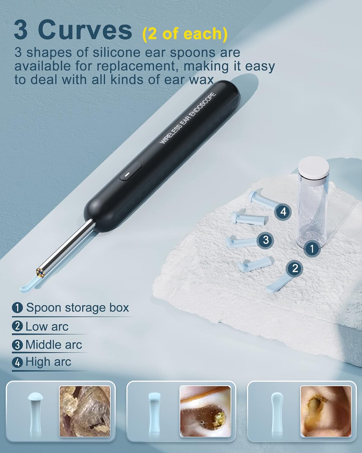 IP67 Waterproof Lens: The ear wax removal kit is easy to clean with water or wipe with alcohol cotton after use, we have increased the air tightness of the lens to avoid the problem of the blurred lens after cleaning.